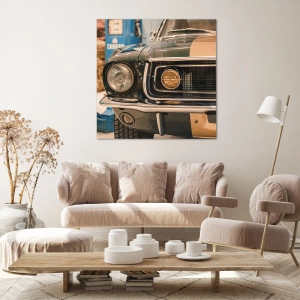• Das Leinwandbild „Meeting a Legend“ zeigt ein kultiges Retro-Auto in einer klassischen Garagenkulisse. Es ist die perfekte Dekoration für Auto- und Designliebhaber.