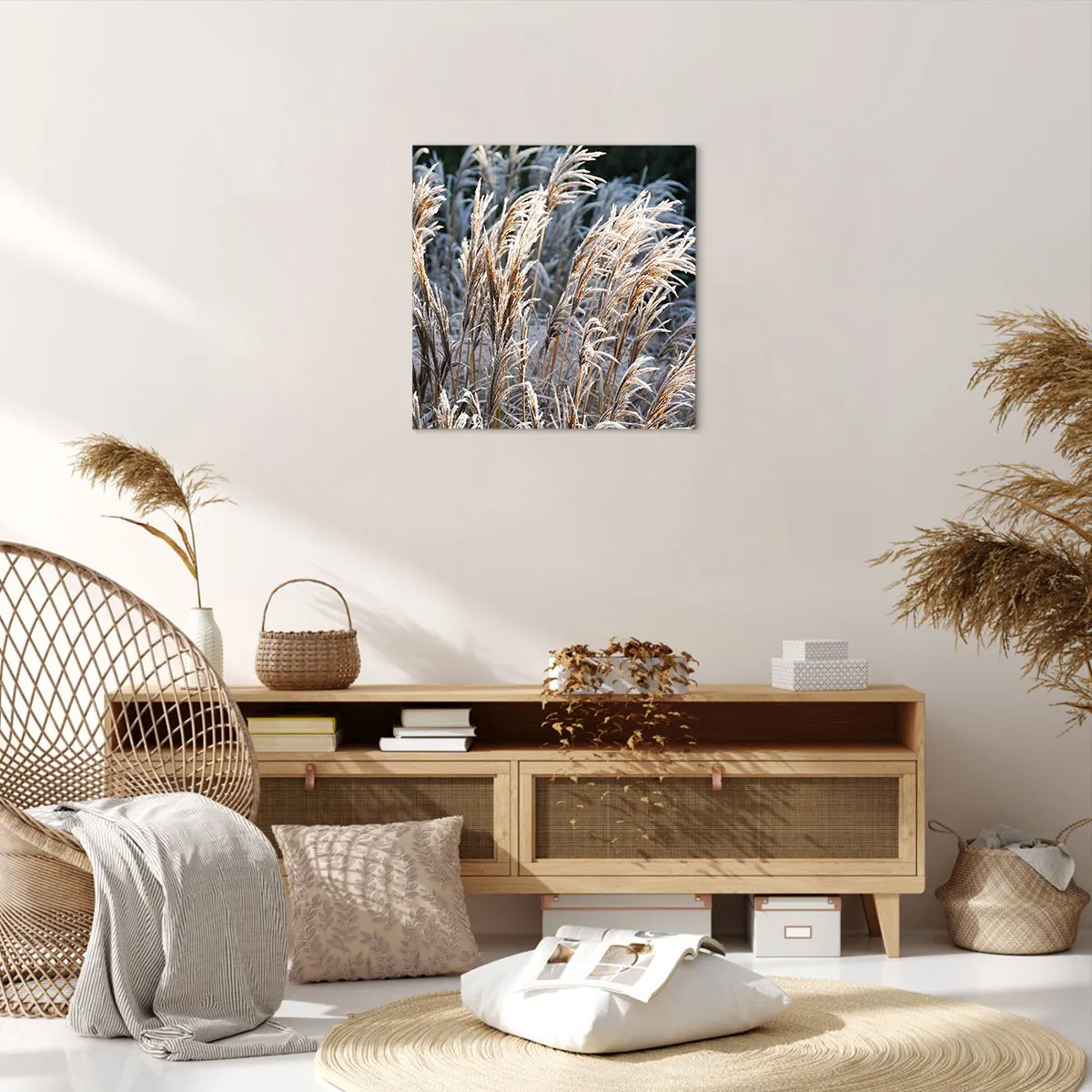 Wir verwenden ökologische, geruchslose und langlebige Tinten mit tiefer Farbsättigung. Durch moderne Drucktechnik wird der Druck präzise platziert, wobei die sichtbare Struktur der Leinwand erhalten bleibt