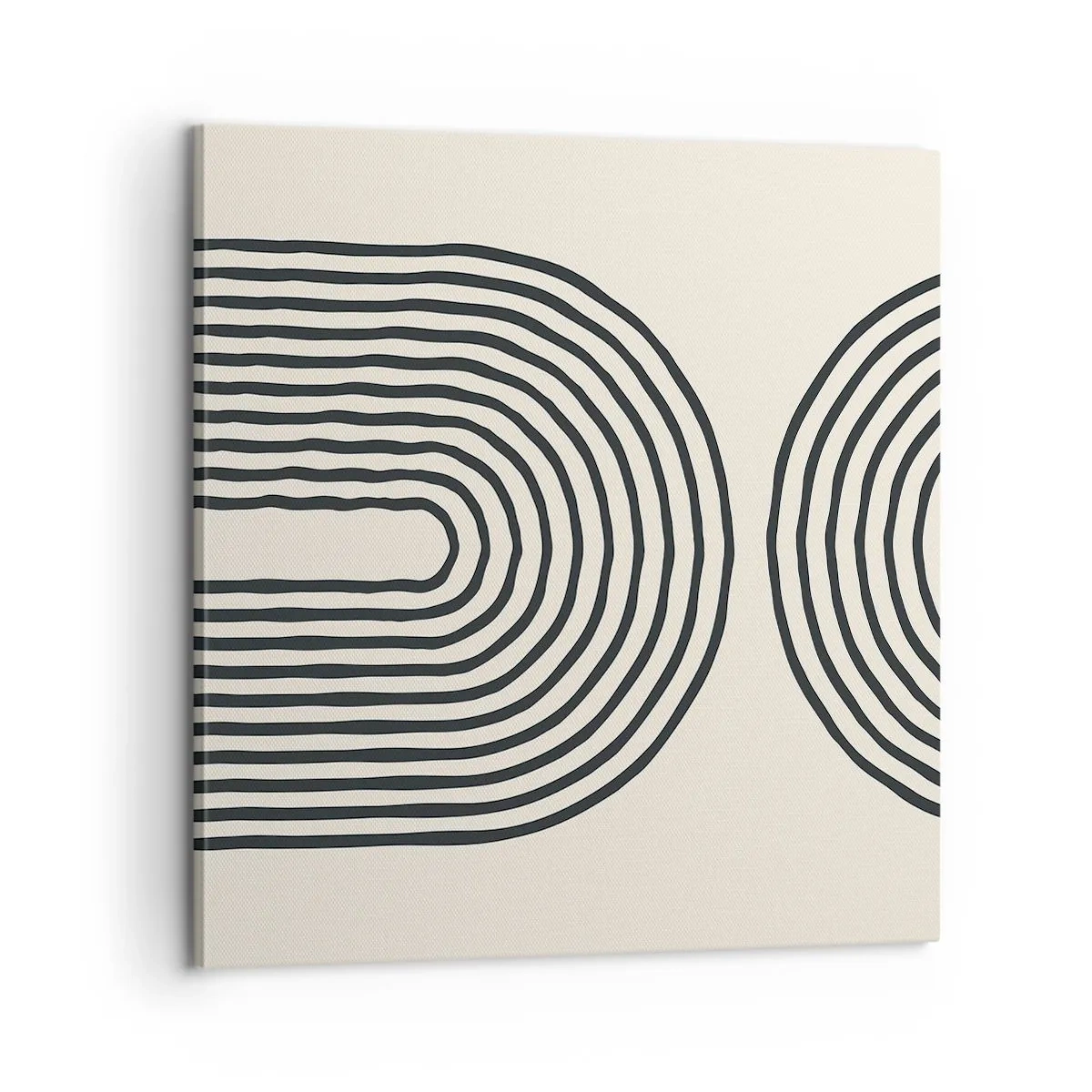 Die Leinwand wird über den Rahmen gespannt. Die Seiten und Kanten werden gedruckt, um das Bild fortzusetzen. Das Bild ist fertig zum Aufhängen an der Wand. Jedes Produkt hat einen am Rahmen befestigten Anhänger und ein Montageset (Schraube + Stift).