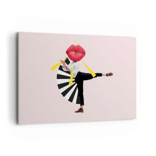 Bild auf Leinwand - Leinwandbild - Surrealistische Figur mit Mund und geometrischen Elementen - 120x80cm - Surreale Pop-Art - Moderne Wanddekoration für Wohnzimmer und Schlafzimmer ARTTOR