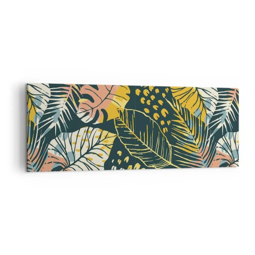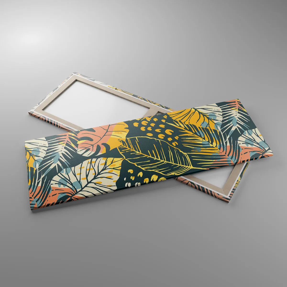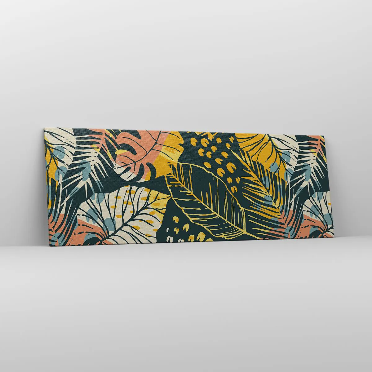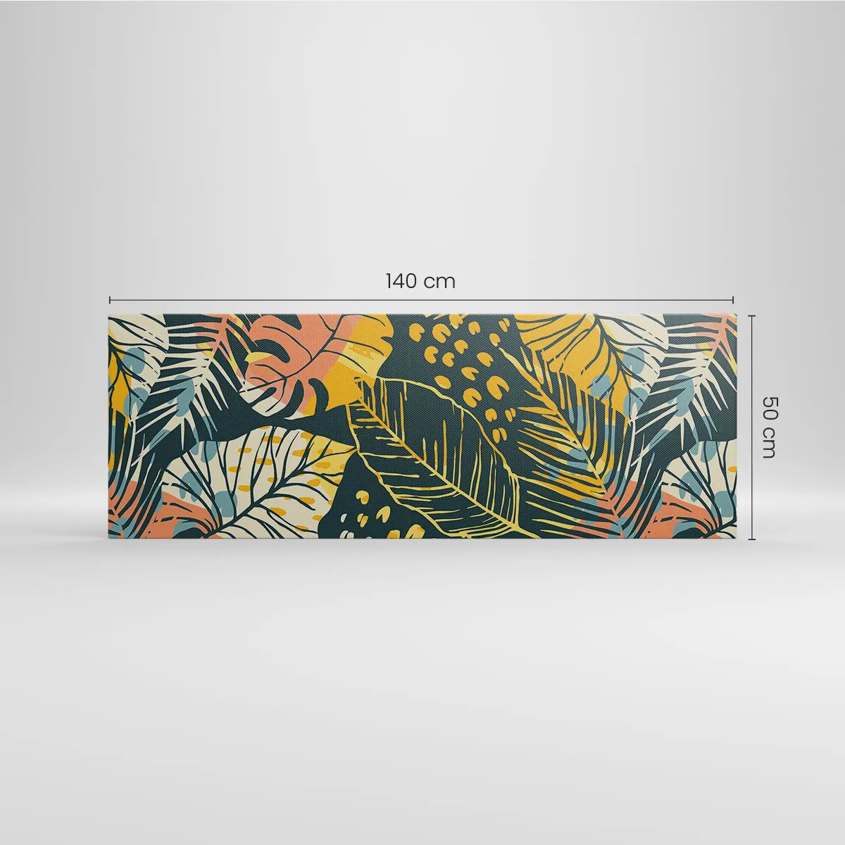 Bild auf Leinwand - Leinwandbild - Bunte Blätter auf dunklem Hintergrund - 140x50cm - Grüne Fantasie - Moderne Wanddekoration für Wohnzimmer und Schlafzimmer ARTTOR