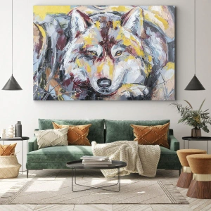 Das Gemälde „Wolf in Farben“ ist nicht nur ein ästhetisches Dekorationselement, sondern auch Ausdruck von modernem Stil und Kühnheit in der Innenarchitektur. Es passt perfekt sowohl in minimalistische als auch in klassischere Arrangements und verleiht ihnen einen einzigartigen Charakter.