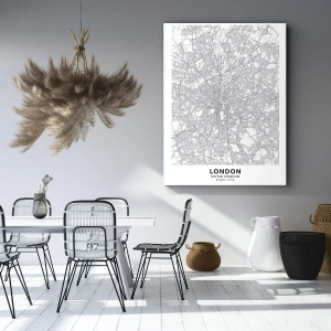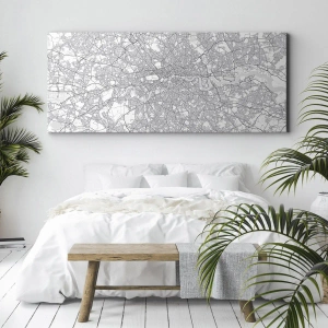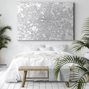 Bild auf Leinwand - Leinwandbild - Ein minimalistischer Stadtplan in Grautönen - 70x50cm - Karte des Labyrinths von London - Moderne Wanddekoration für Wohnzimmer und Schlafzimmer ARTTOR