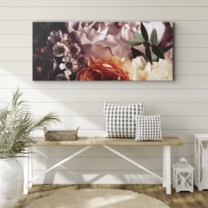 Die Leinwand wird über den Rahmen gespannt. Die Seiten und Kanten werden gedruckt, um das Bild fortzusetzen. Das Bild ist fertig zum Aufhängen an der Wand. Jedes Produkt hat einen am Rahmen befestigten Anhänger und ein Montageset (Schraube + Stift).