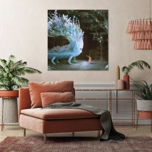 Bild auf Leinwand - Leinwandbild - Die Figur eines Mädchens, das einem fantastischen Wesen gegenübersteht - 70x50cm - Fantastisches Treffen - Moderne Wanddekoration für Wohnzimmer und Schlafzimmer ARTTOR