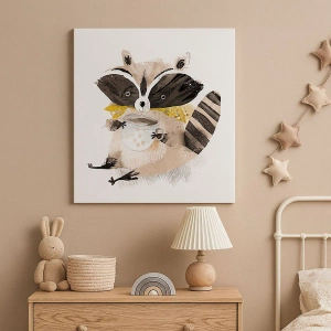 - Das Gemälde zeigt einen charmanten Waschbären, der eine Tasse in den Händen hält, umgeben von Pastellfarben. Perfekt für die Dekoration eines Kinderzimmers, sorgt es für Humor und Gemütlichkeit.