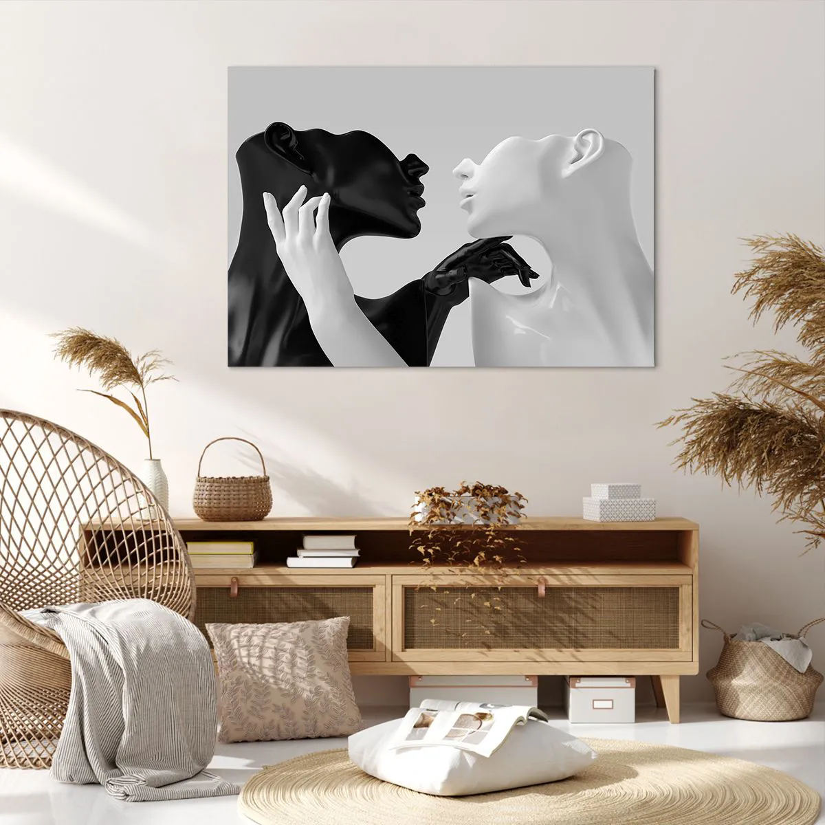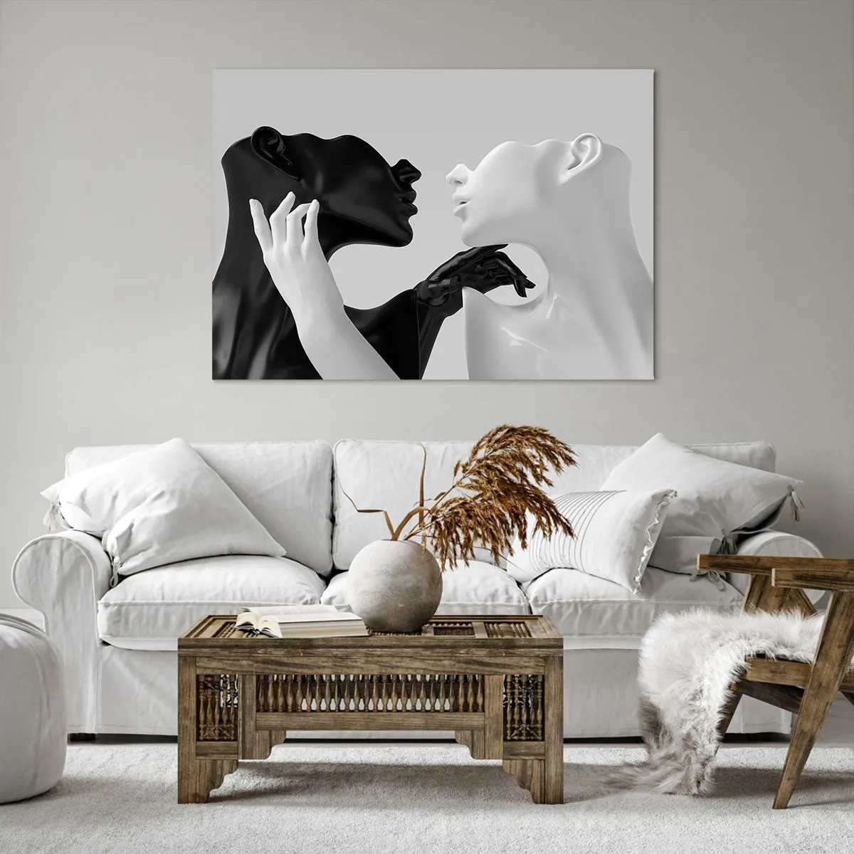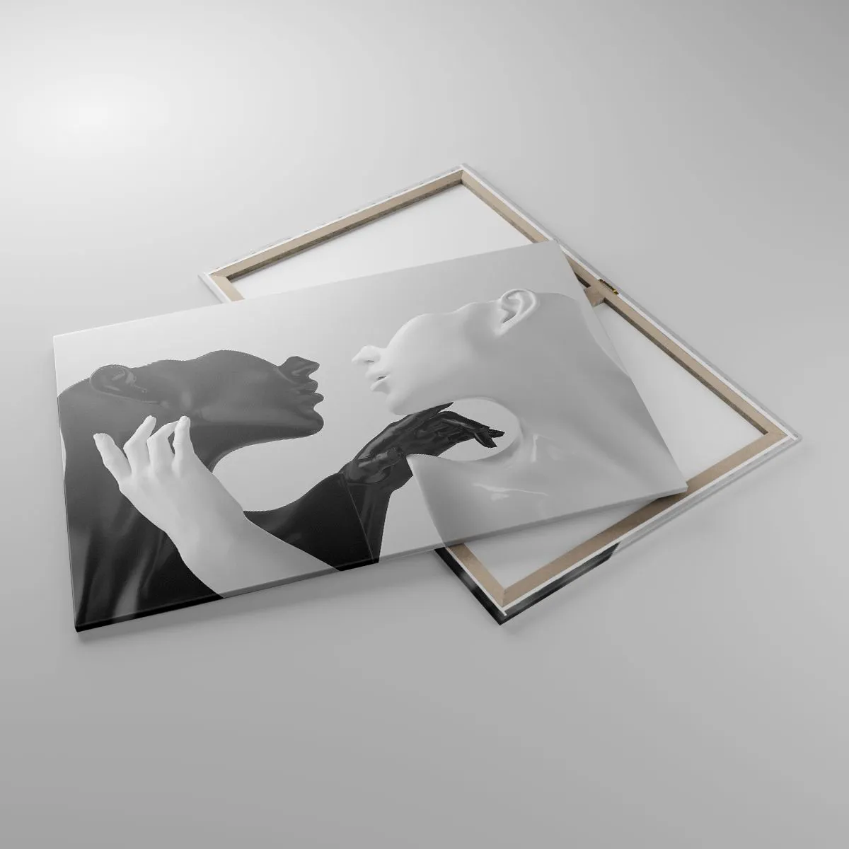 Bild auf Leinwand - Leinwandbild - Schwarz-weiße Silhouetten in dynamischer Nahaufnahme - 100x70cm - Anziehung - Begierde - Moderne Wanddekoration für Wohnzimmer und Schlafzimmer ARTTOR