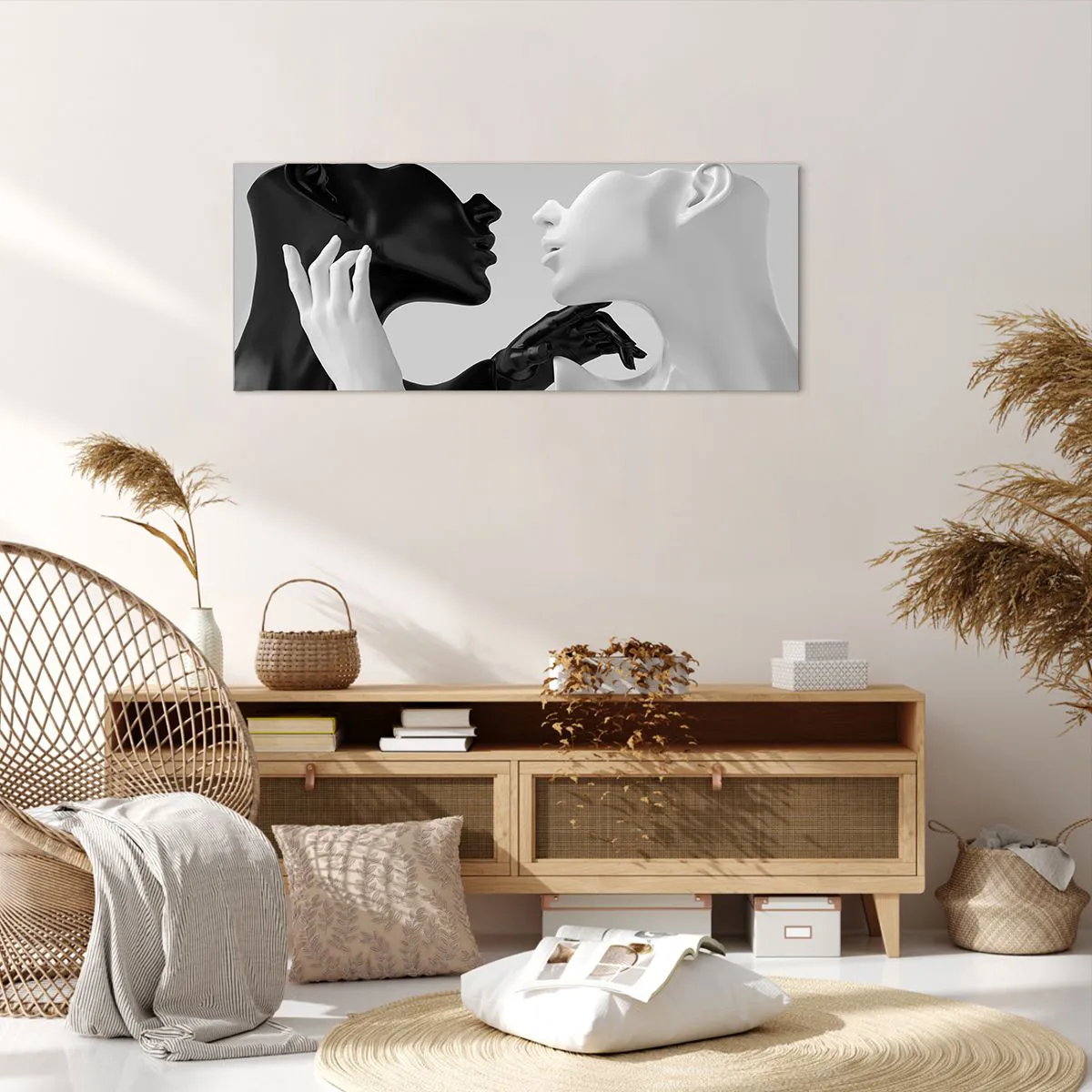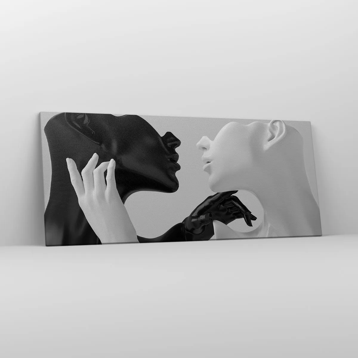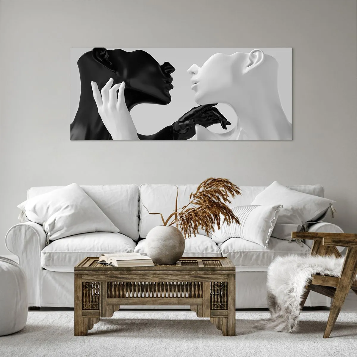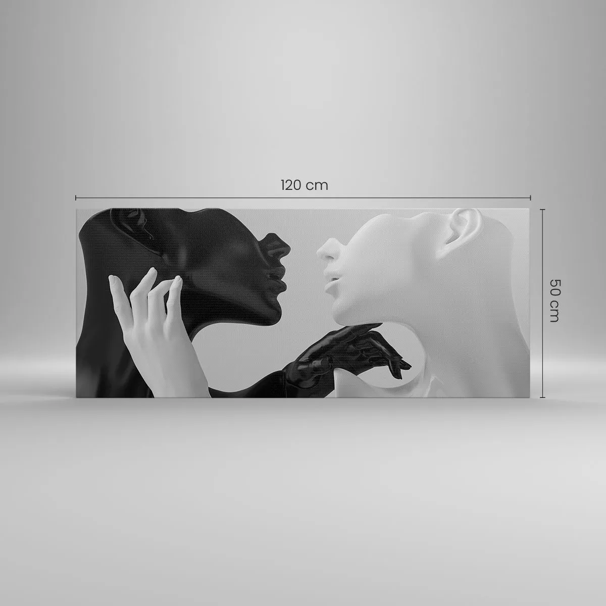 Bild auf Leinwand - Leinwandbild - Schwarz-weiße Silhouetten in dynamischer Nahaufnahme - 120x50cm - Anziehung - Begierde - Moderne Wanddekoration für Wohnzimmer und Schlafzimmer ARTTOR