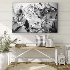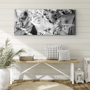 Bild auf Leinwand - Leinwandbild - Schwarz-weiße Blumenarrangements in dezentem Kunststil - 140x50cm - Kein Blumenstrauß - Moderne Wanddekoration für Wohnzimmer und Schlafzimmer ARTTOR