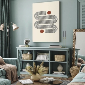Die Leinwand wird über den Rahmen gespannt. Die Seiten und Kanten werden gedruckt, um das Bild fortzusetzen. Das Bild ist fertig zum Aufhängen an der Wand. Jedes Produkt hat einen am Rahmen befestigten Anhänger und ein Montageset (Schraube + Stift).