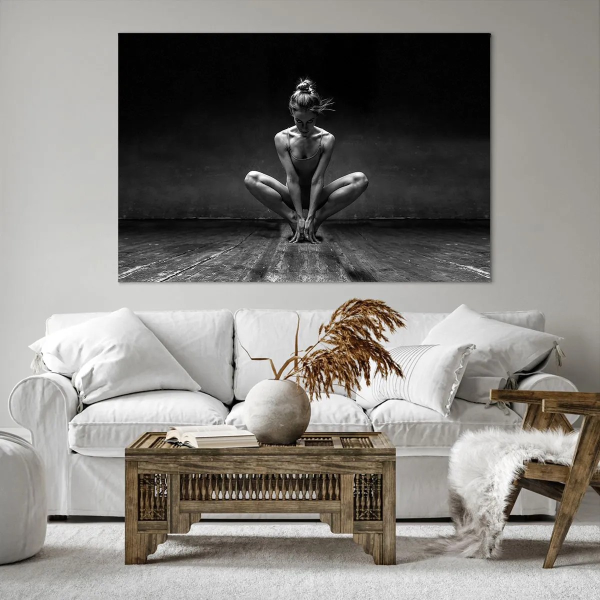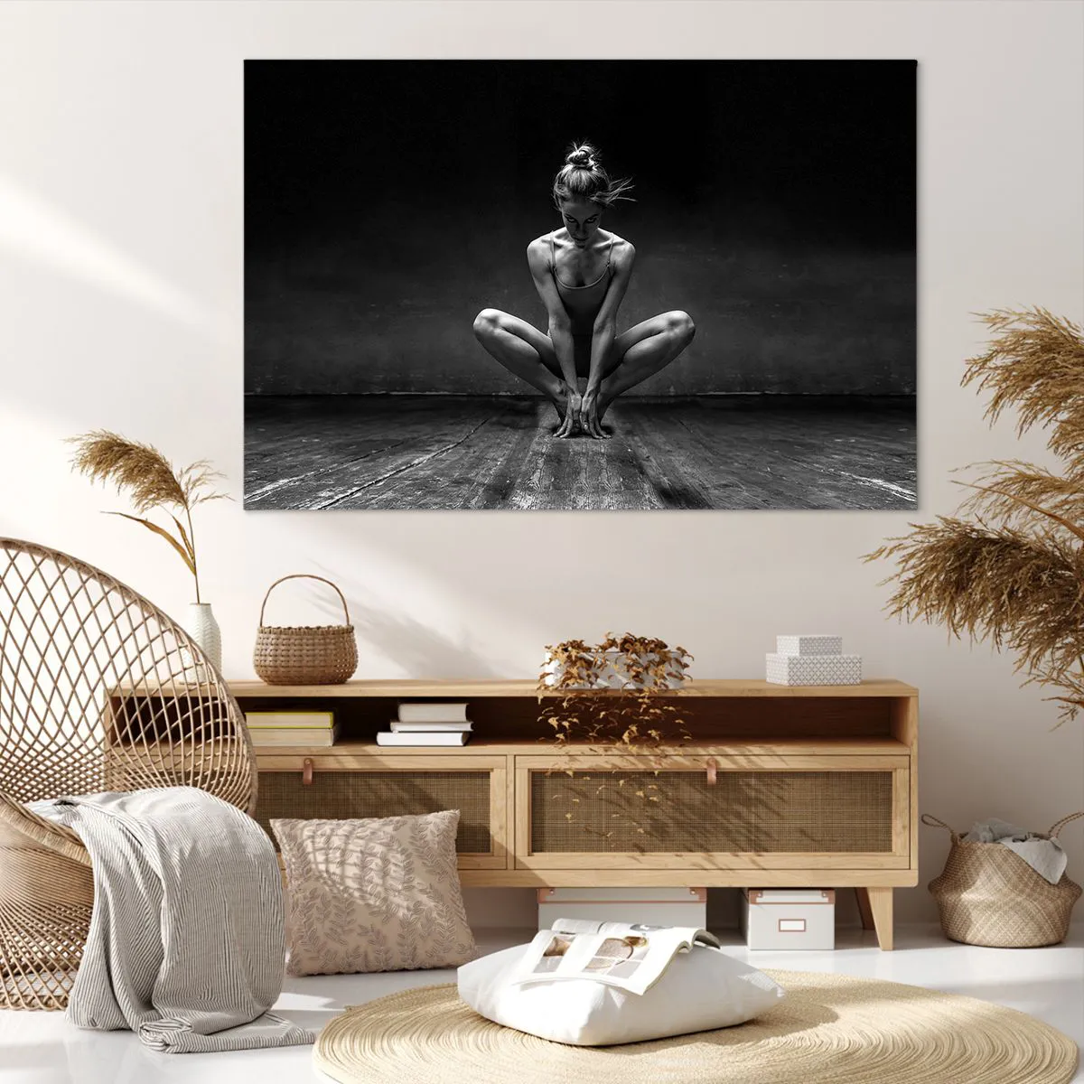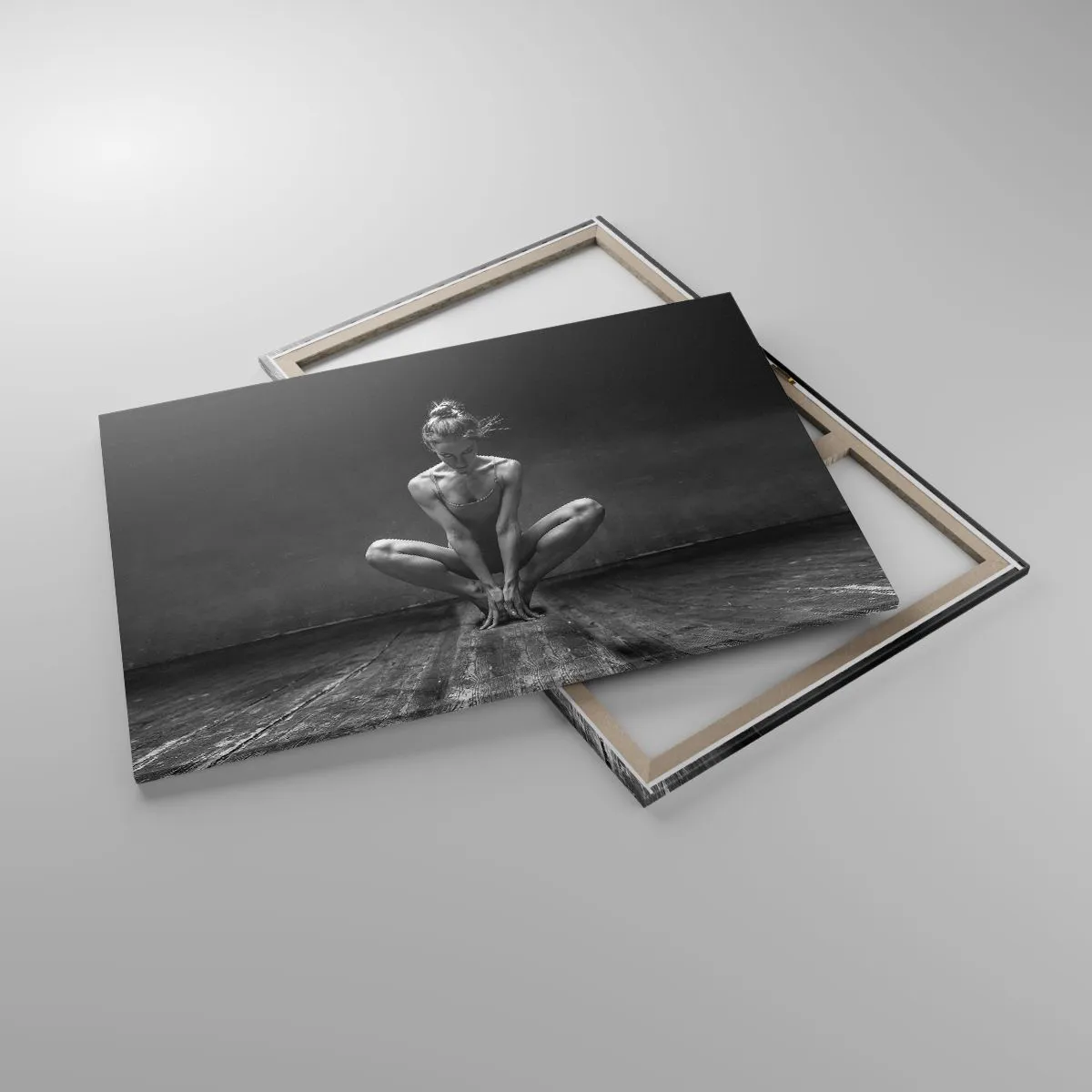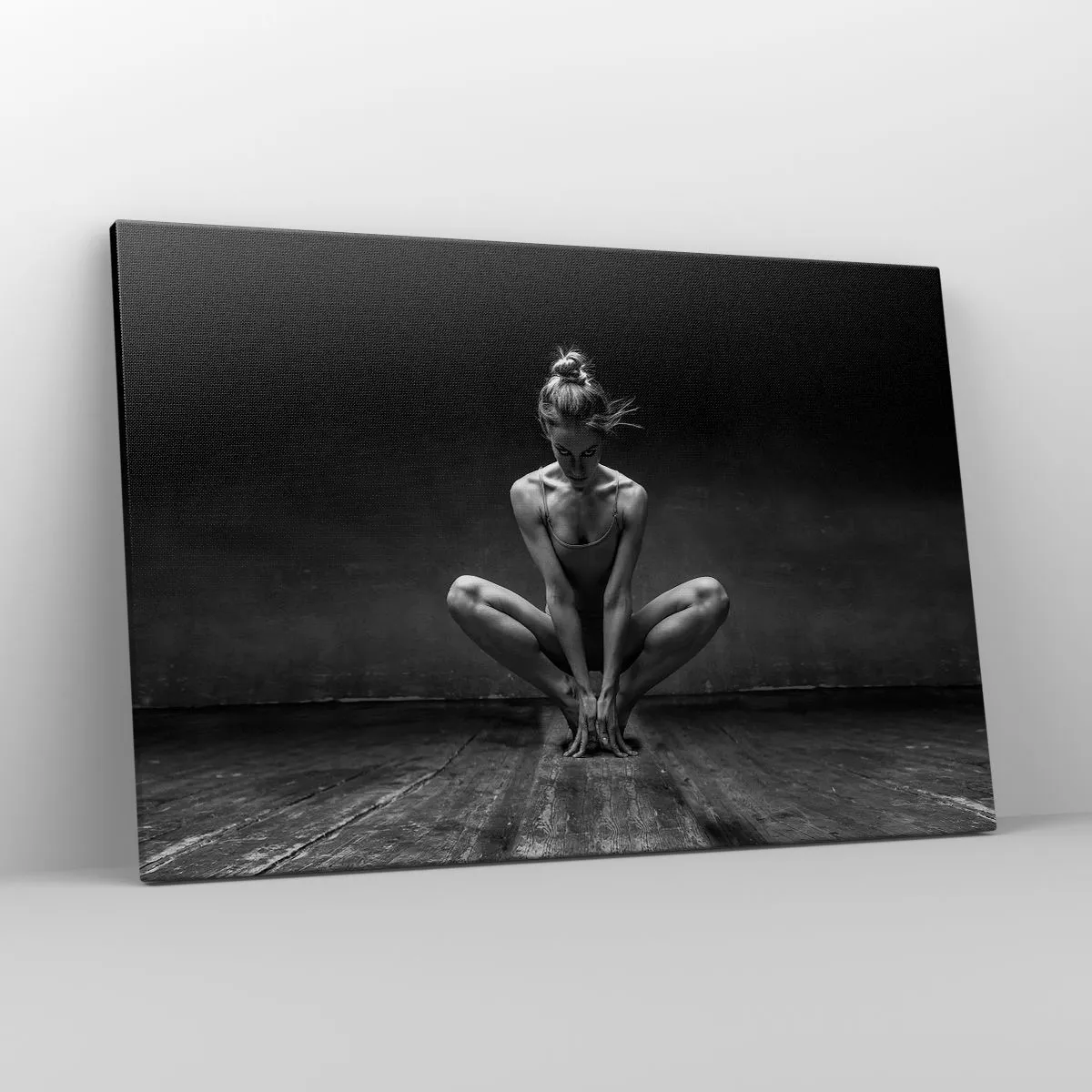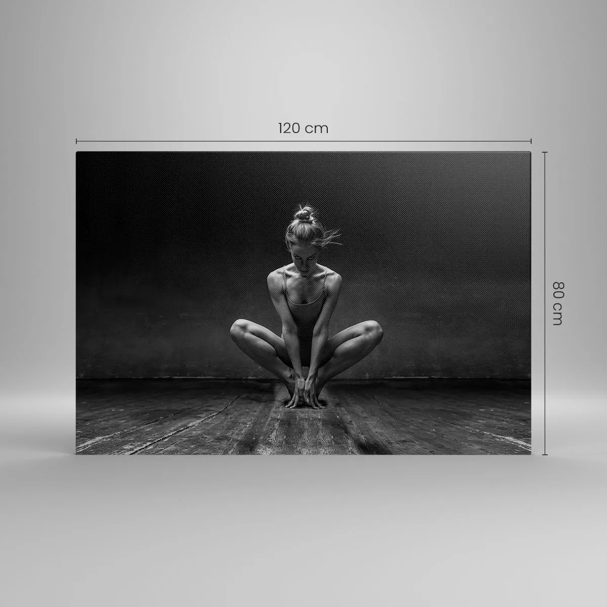 Bild auf Leinwand - Leinwandbild - Ein Schwarz-Weiß-Porträt einer Tänzerin in voller Konzentration. - 120x80cm - Konzentration der Tanzenergie - Moderne Wanddekoration für Wohnzimmer und Schlafzimmer ARTTOR