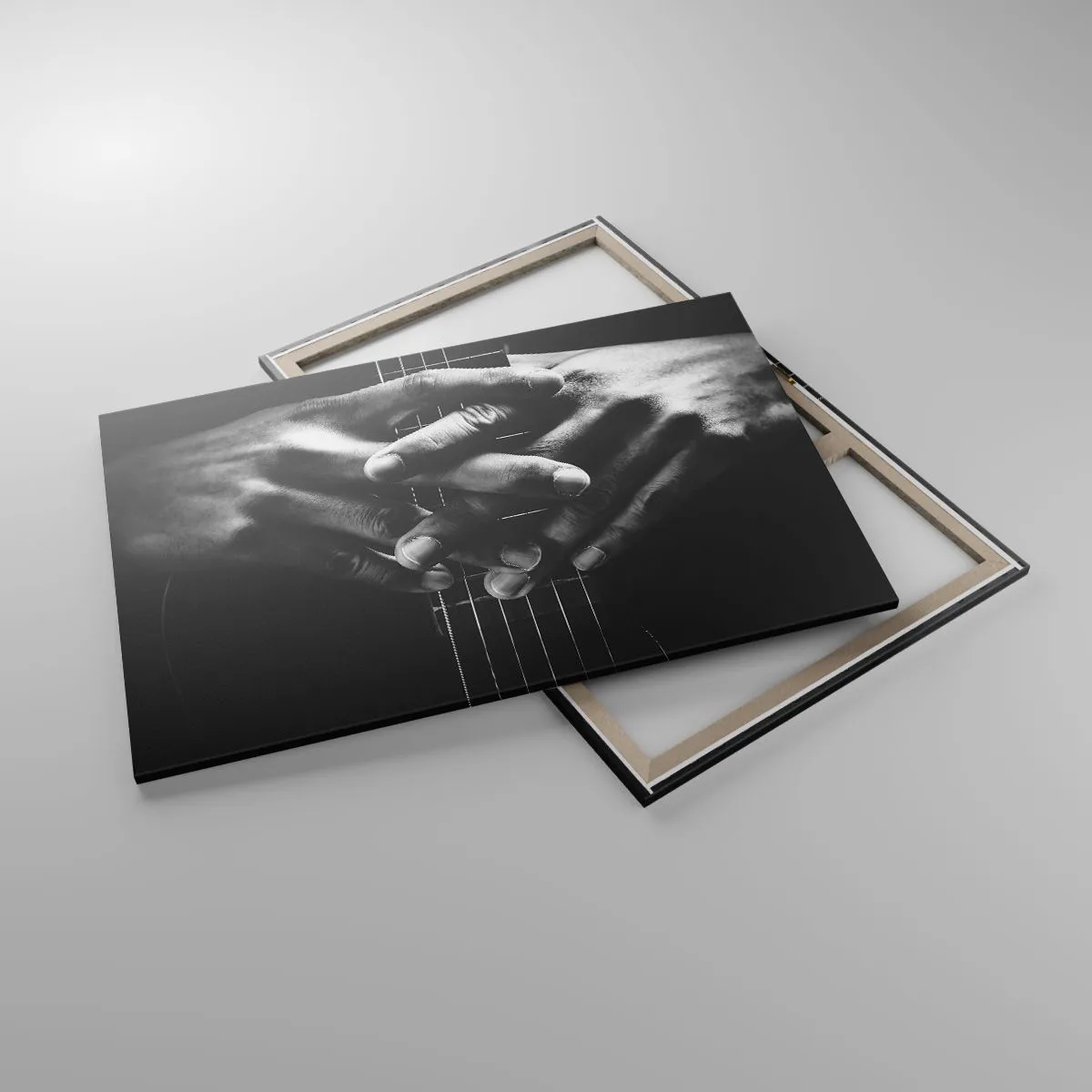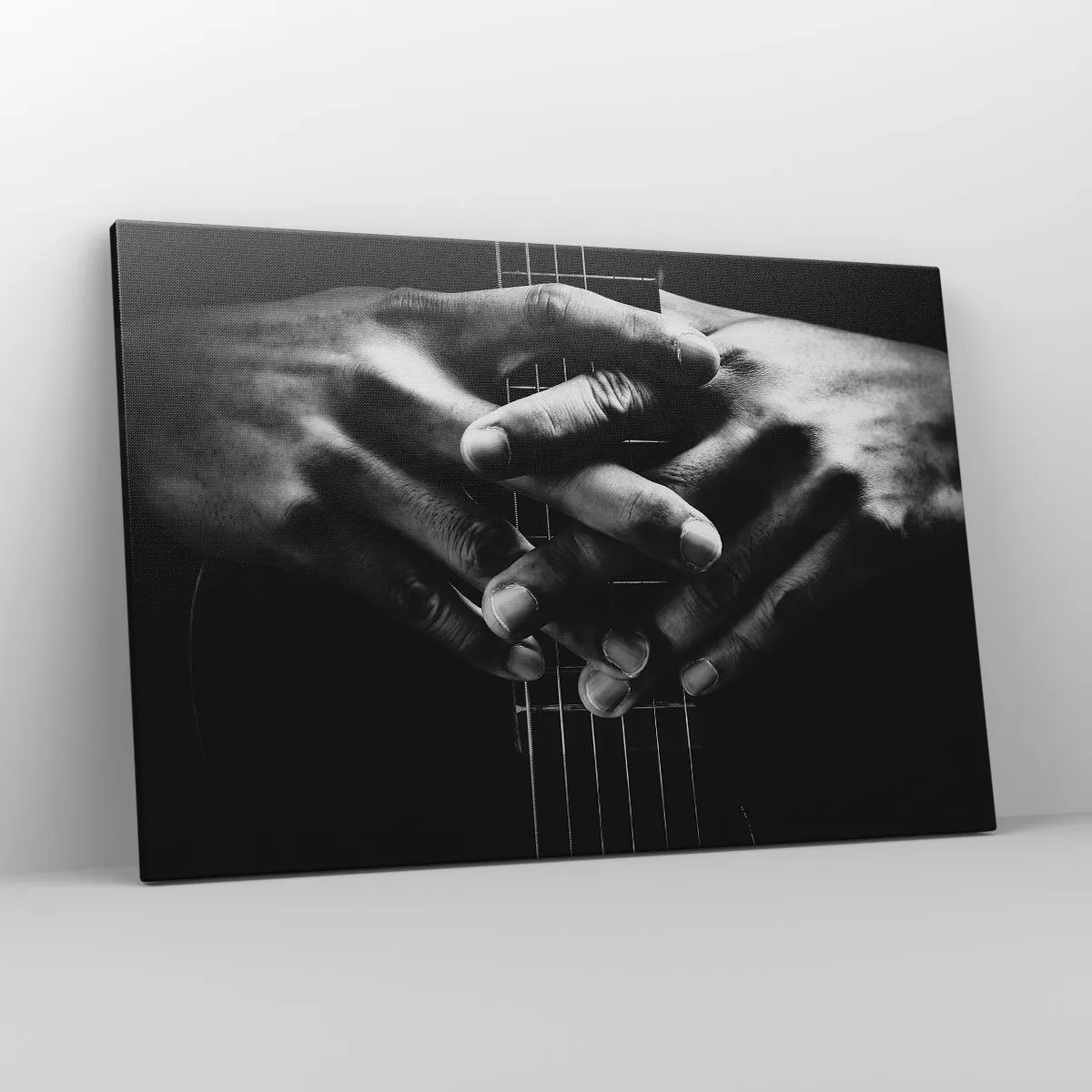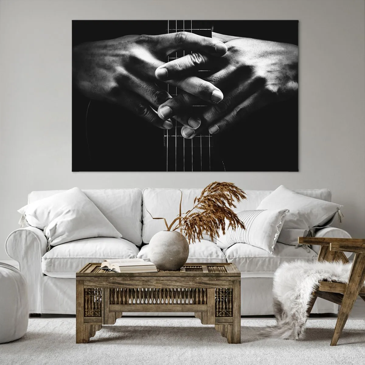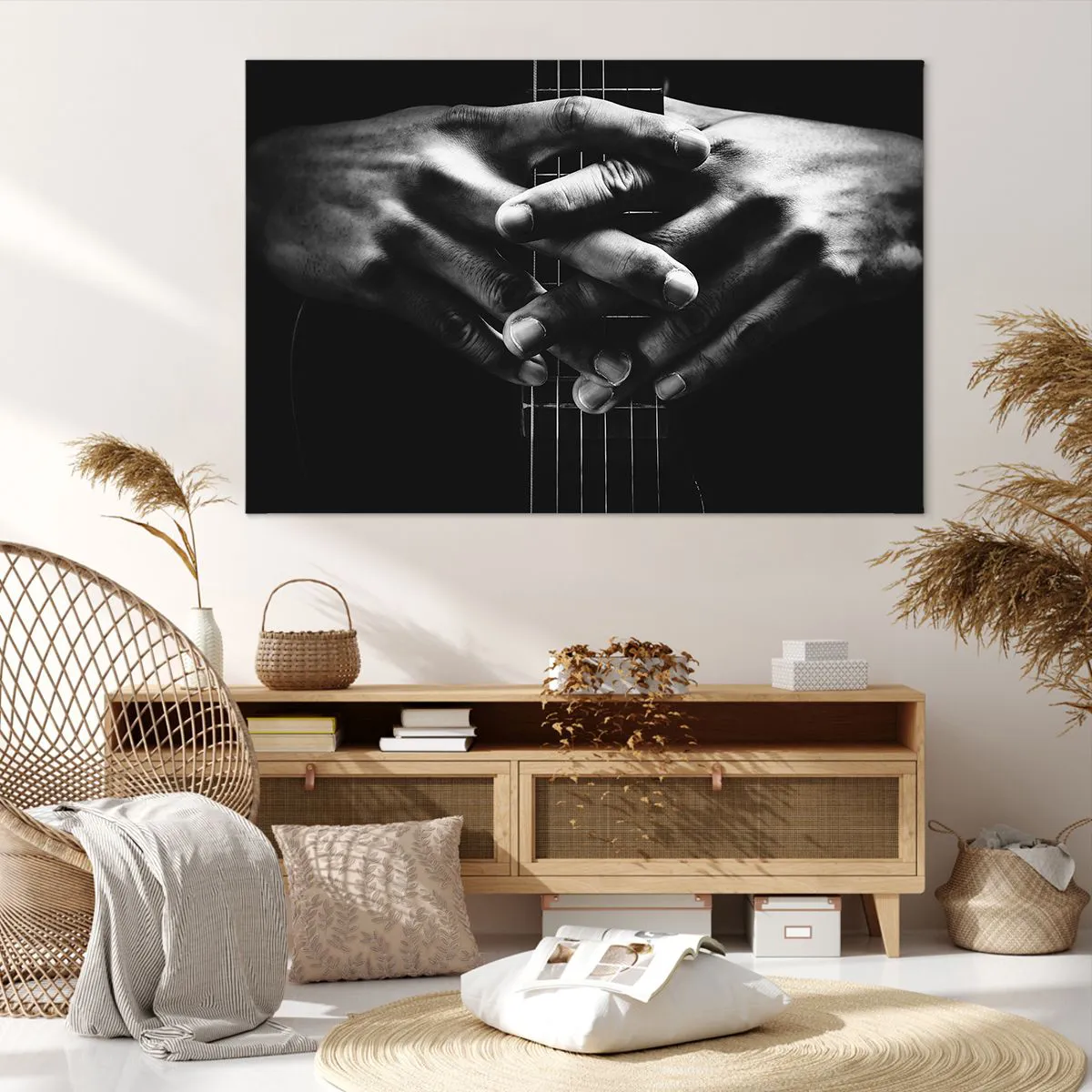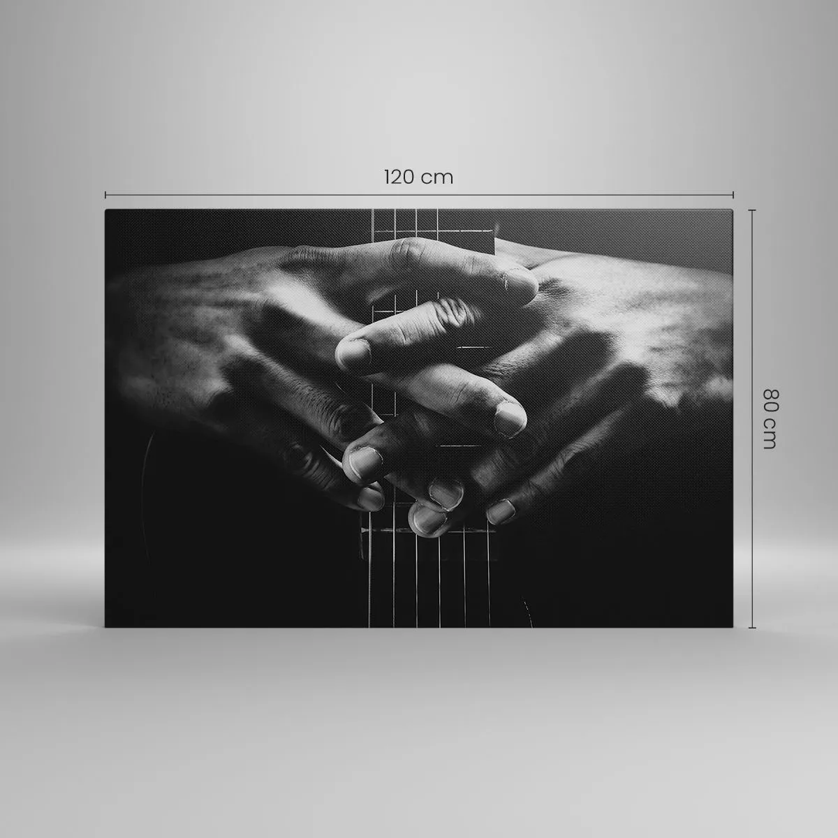 Bild auf Leinwand - Leinwandbild - Hände auf einer Gitarre in einem monochromen Ton gefaltet - 120x80cm - Gebet des Künstlers - Moderne Wanddekoration für Wohnzimmer und Schlafzimmer ARTTOR