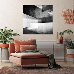 Das Motiv der geometrischen Strukturen symbolisiert Ordnung, Präzision und Modernität. Der Druck „Raumstruktur“ eignet sich perfekt als Dekoration, die den individuellen Charakter und Stil eines Interieurs unterstreicht. Sein universelles Design ermöglicht eine einfache Anpassung an eine Vielzahl von Inneneinrichtungen, von industriell bis klassisch.