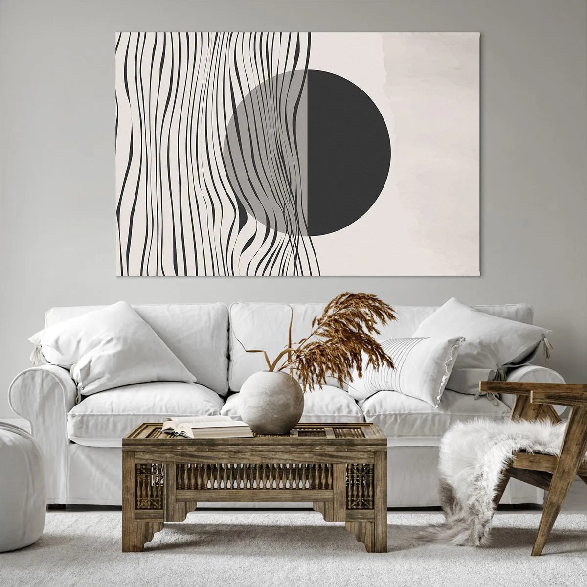 Bild auf Leinwand - Leinwandbild - Abstrakte Linien und geometrische Formen in gedeckten Farben - 120x80cm - Halbe Komposition - Moderne Wanddekoration für Wohnzimmer und Schlafzimmer ARTTOR