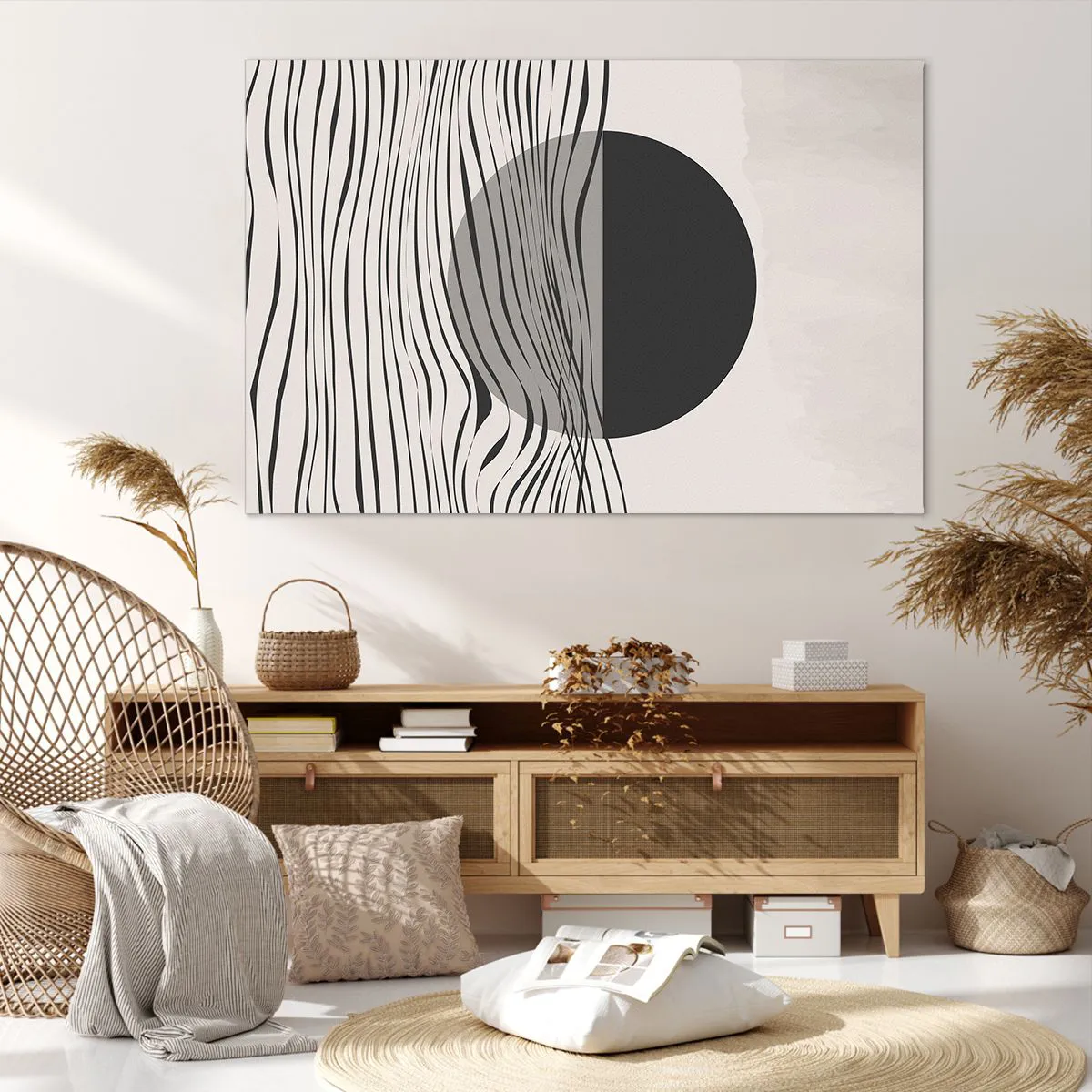 Wir verwenden ökologische, geruchslose und langlebige Tinten mit tiefer Farbsättigung. Durch moderne Drucktechnik wird der Druck präzise platziert, wobei die sichtbare Struktur der Leinwand erhalten bleibt