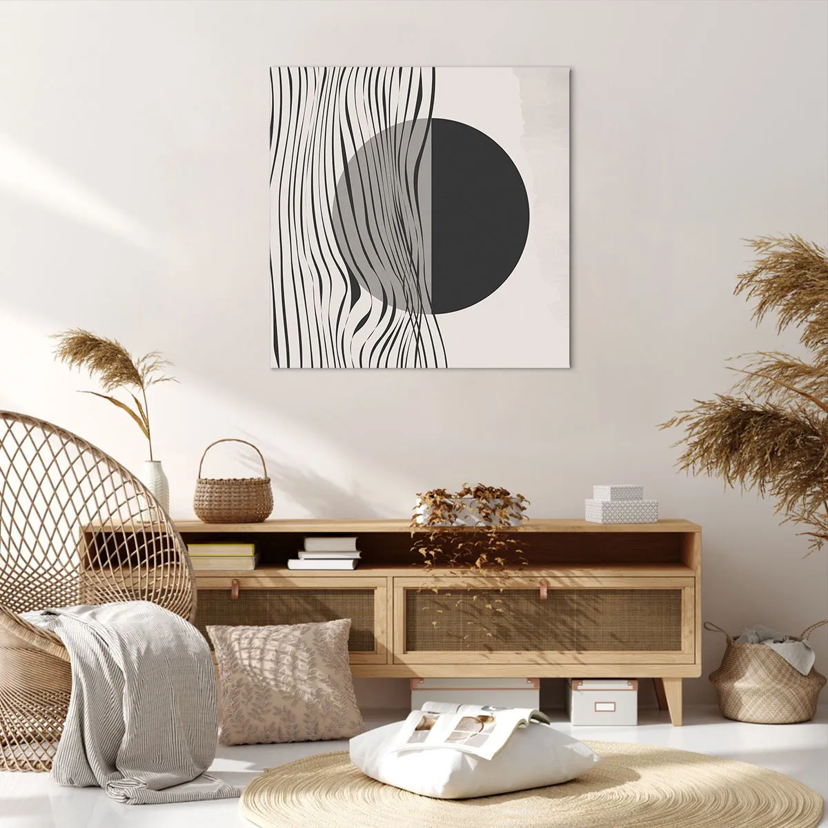 Wir verwenden ökologische, geruchslose und langlebige Tinten mit tiefer Farbsättigung. Durch moderne Drucktechnik wird der Druck präzise platziert, wobei die sichtbare Struktur der Leinwand erhalten bleibt