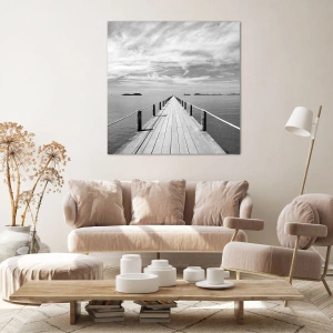 - Ein Holzsteg in monochromen Tönen führt über ein ruhiges Meer in die Ferne. Ein einzigartiges Bild, das jedem Interieur Ruhe und Harmonie verleiht.