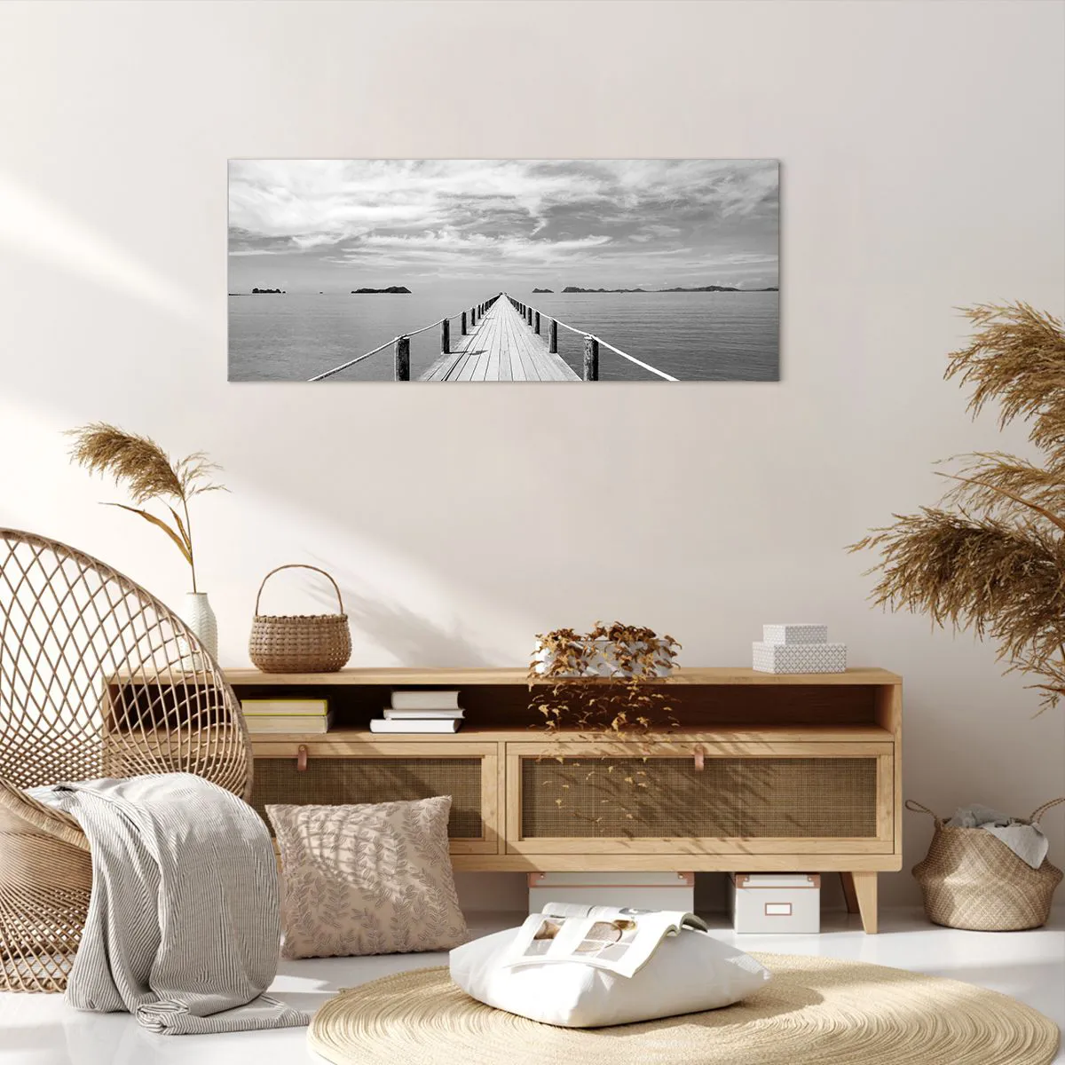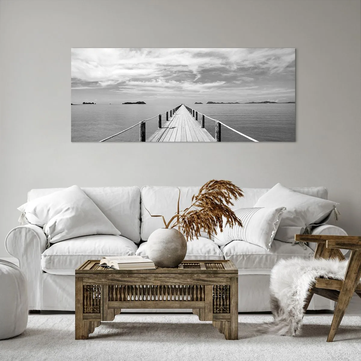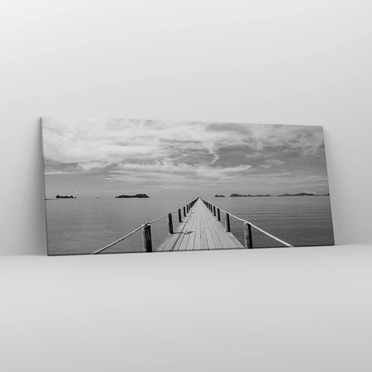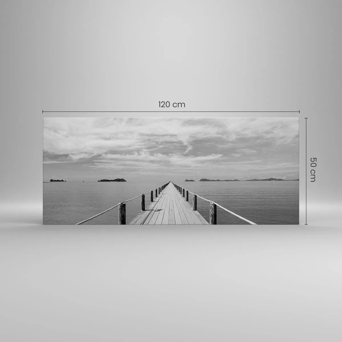 Bild auf Leinwand - Leinwandbild - Ein Holzsteg, der über ein ruhiges Meer in die Ferne führt - 120x50cm - Oder vielleicht eine Reise ... - Moderne Wanddekoration für Wohnzimmer und Schlafzimmer ARTTOR