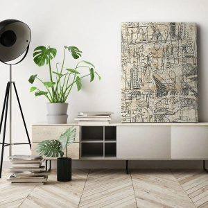 Bild auf Leinwand - Leinwandbild - Abstrakte Muster und Linien auf beigem Hintergrund - 100x70cm - Es wartet darauf, entschlüsselt zu werden - Moderne Wanddekoration für Wohnzimmer und Schlafzimmer ARTTOR