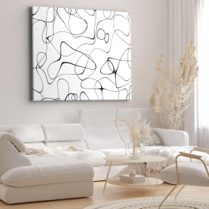 Die Leinwand wird über den Rahmen gespannt. Die Seiten und Kanten werden gedruckt, um das Bild fortzusetzen. Das Bild ist fertig zum Aufhängen an der Wand. Jedes Produkt hat einen am Rahmen befestigten Anhänger und ein Montageset (Schraube + Stift).