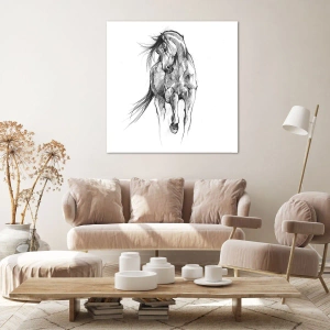 Die Linien der Skizze sind subtil, aber ausdrucksstark, was dem Werk einen einzigartigen Charakter verleiht. Der Kontrast von Weiß und Grau sorgt für Harmonie und Ruhe und macht das Gemälde zu einer idealen Wahl für moderne und klassische Inneneinrichtungen. Das Pferd, ein Symbol für Freiheit und Stärke, passt perfekt in eine Vielzahl von Inneneinrichtungen.