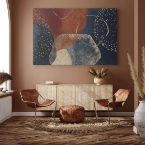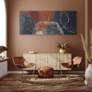 Bild auf Leinwand - Leinwandbild - Abstrakte Formen in Rot- und Blautönen - 140x50cm - Die Leichtigkeit des Seins - Moderne Wanddekoration für Wohnzimmer und Schlafzimmer ARTTOR