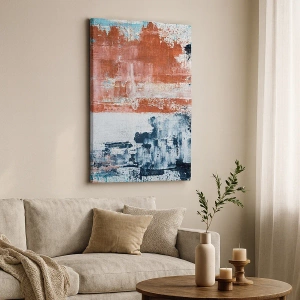 Bild auf Leinwand - Leinwandbild - Abstraktion in Weiß-, Blau- und Ziegelfarben - 70x50cm - Fünfzig-Fünfzig abstrakt - Moderne Wanddekoration für Wohnzimmer und Schlafzimmer ARTTOR