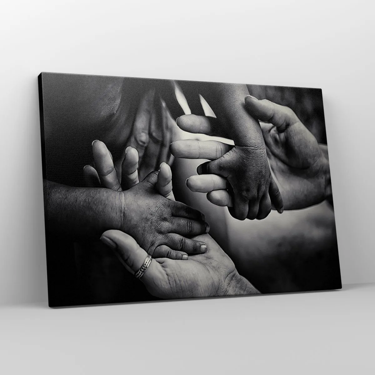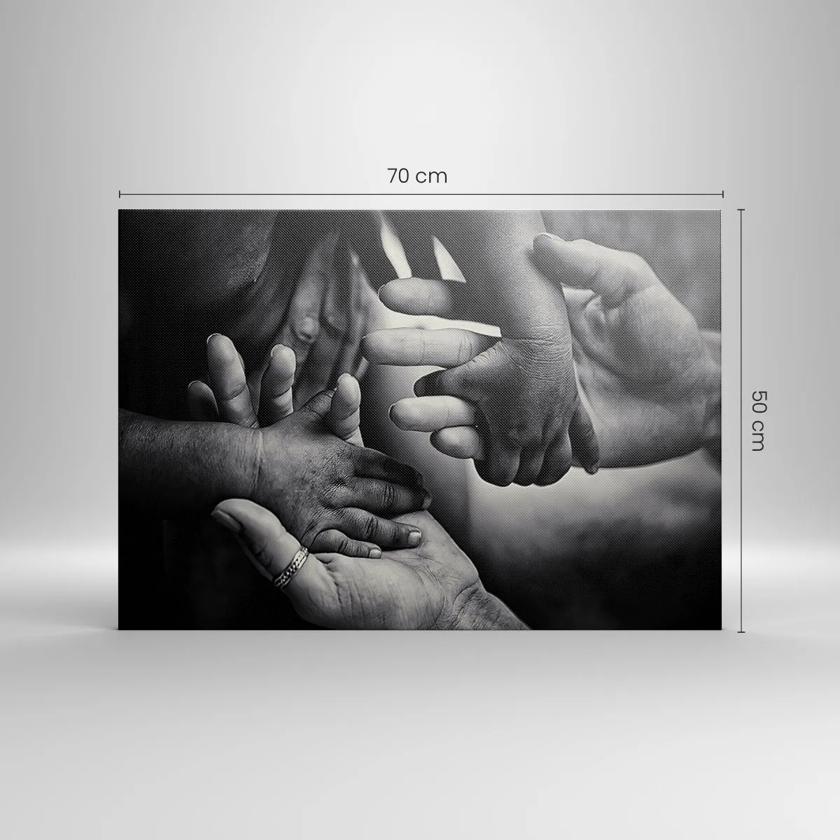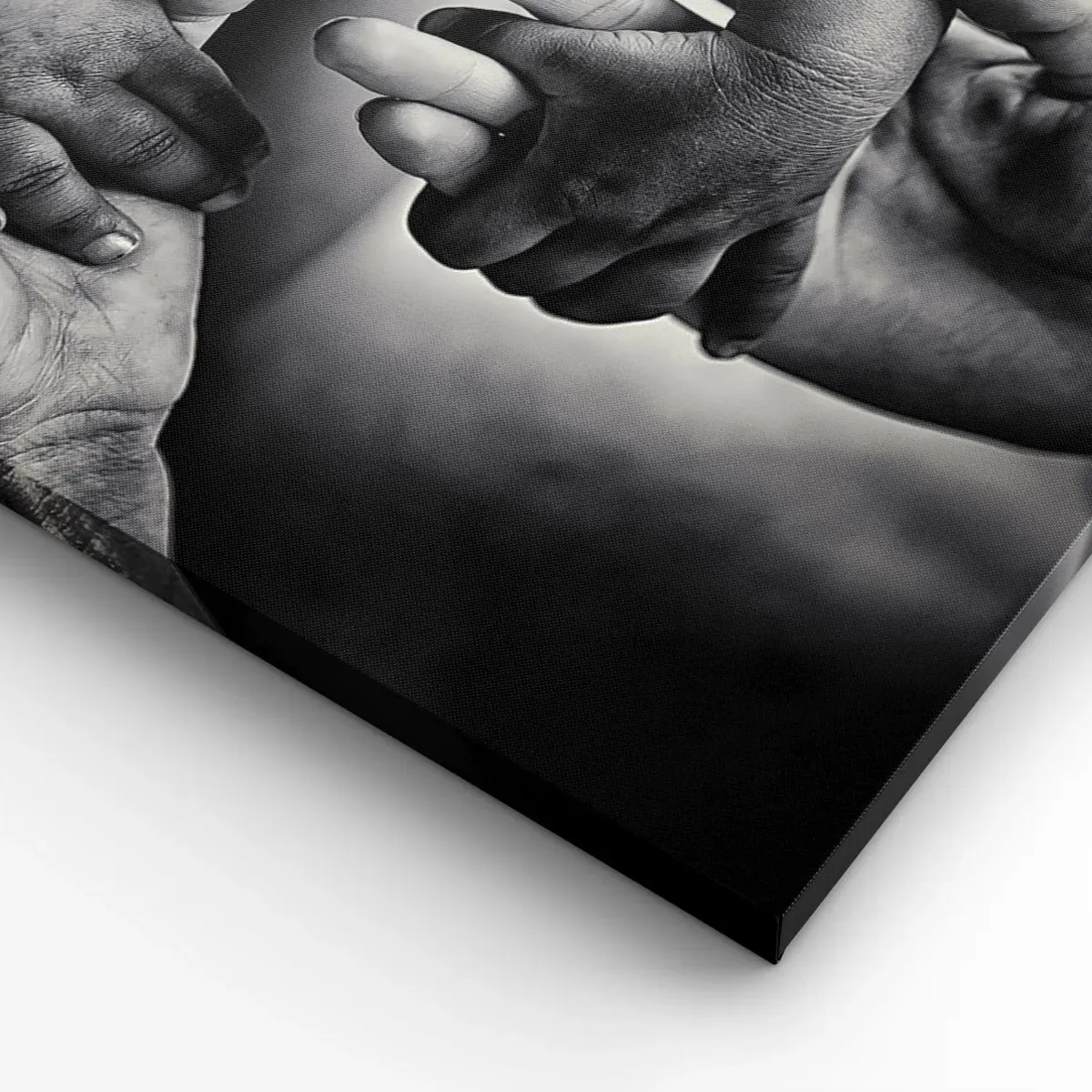 - Dieses Schwarz-Weiß-Gemälde zeigt die gefalteten Hände von Menschen unterschiedlichen Alters und symbolisiert so die Verbundenheit und Nähe zwischen den Generationen. Es eignet sich perfekt als Wanddekoration für ein Schlafzimmer oder Wohnzimmer und ve...