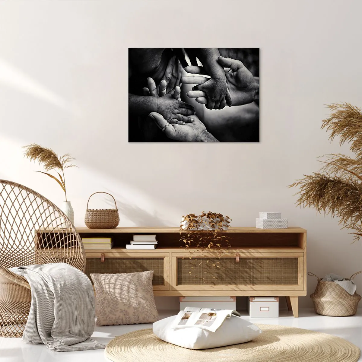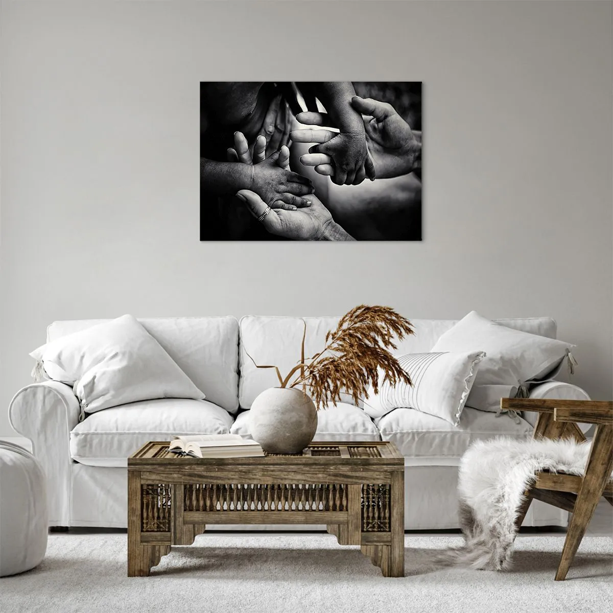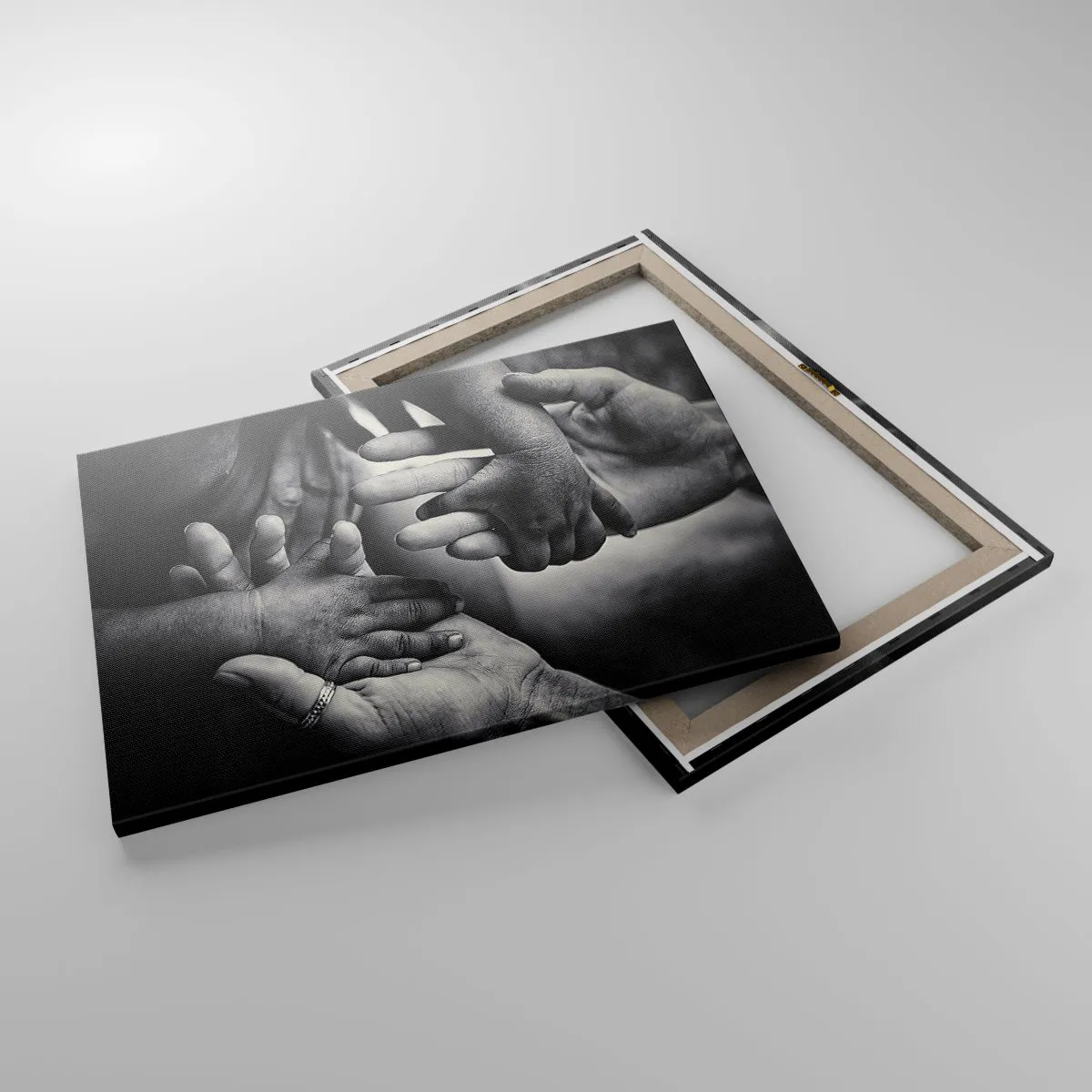 - Dieses Schwarz-Weiß-Gemälde zeigt die gefalteten Hände von Menschen unterschiedlichen Alters und symbolisiert so die Verbundenheit und Nähe zwischen den Generationen. Es eignet sich perfekt als Wanddekoration für ein Schlafzimmer oder Wohnzimmer und ve...