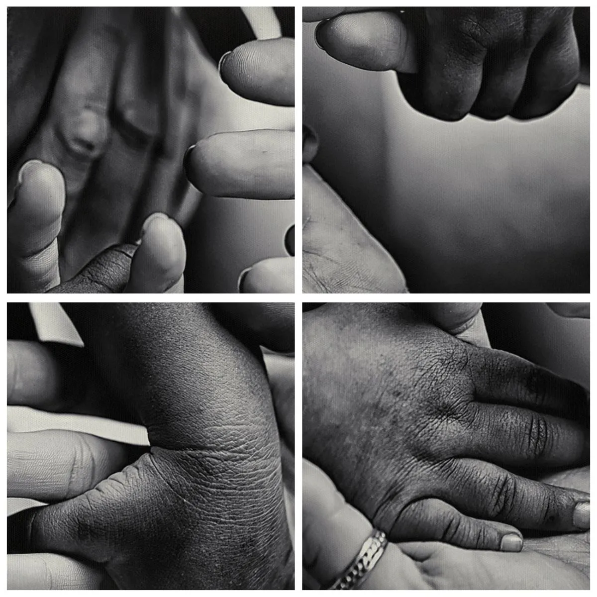 Wandgemälde – Menschsein – Schwarz-weiße Hände verschiedener Generationen