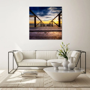 • Landschaft, Sonnenuntergang, Meer, Landschaften, Maritim, Für das Büro, für das Arbeitszimmer, für das Esszimmer, für das Badezimmer, für den Flur, für das Wohnzimmer, für das Schlafzimmer, Blau, Gelb, Braun, Quadrat