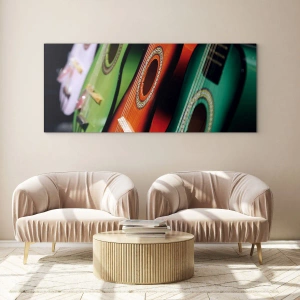 Glasbild - Bild auf glas - Die Gitarre hat viele Farben - 100x40 cm