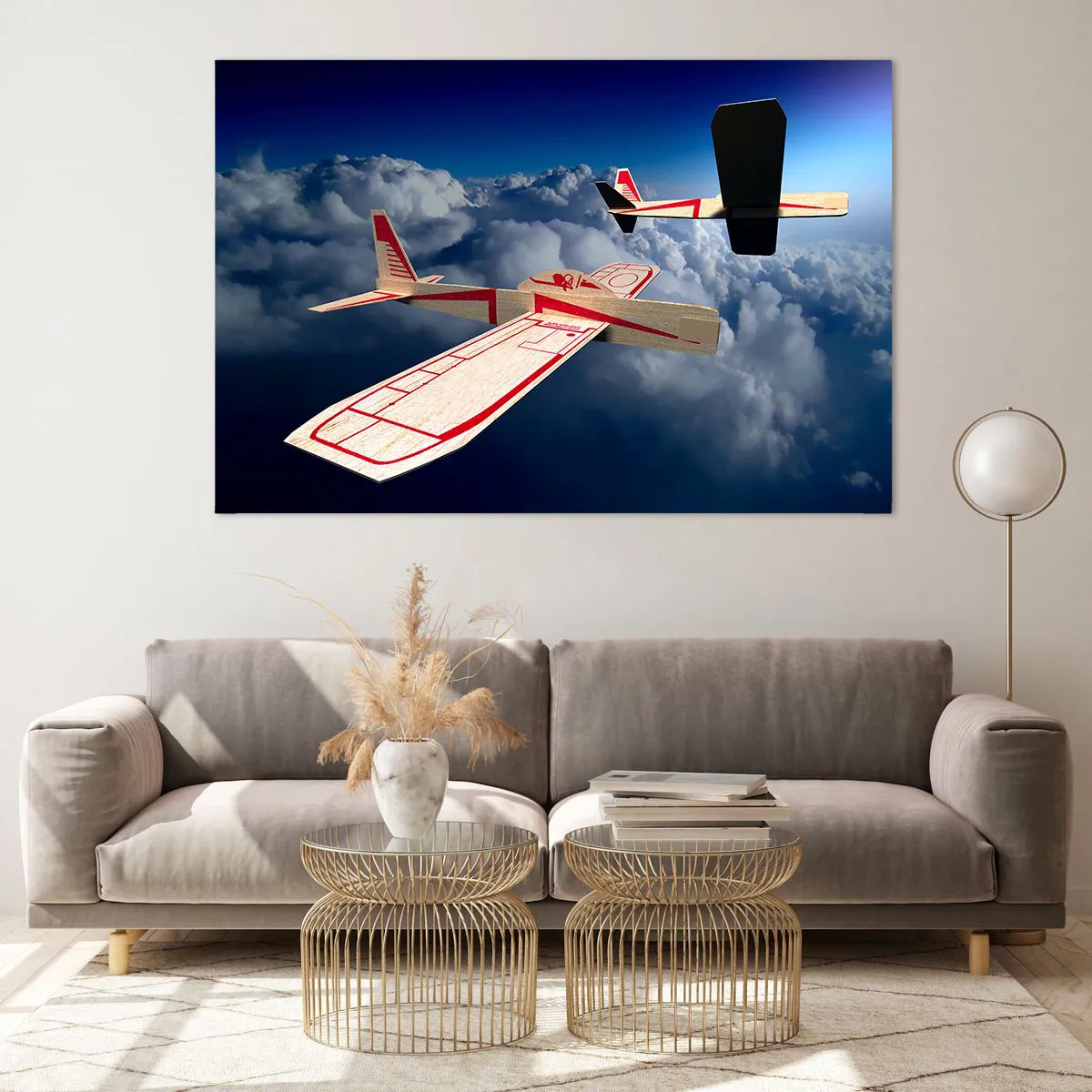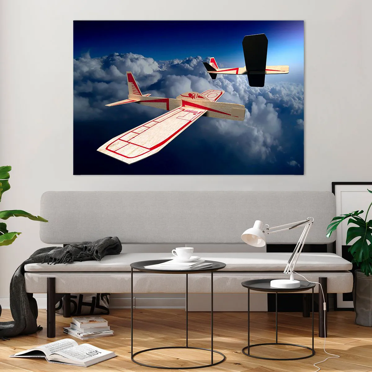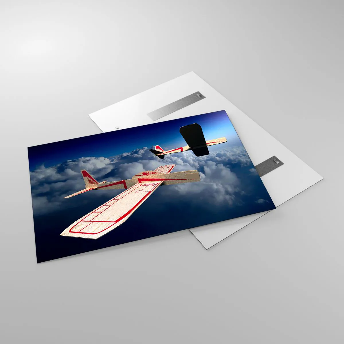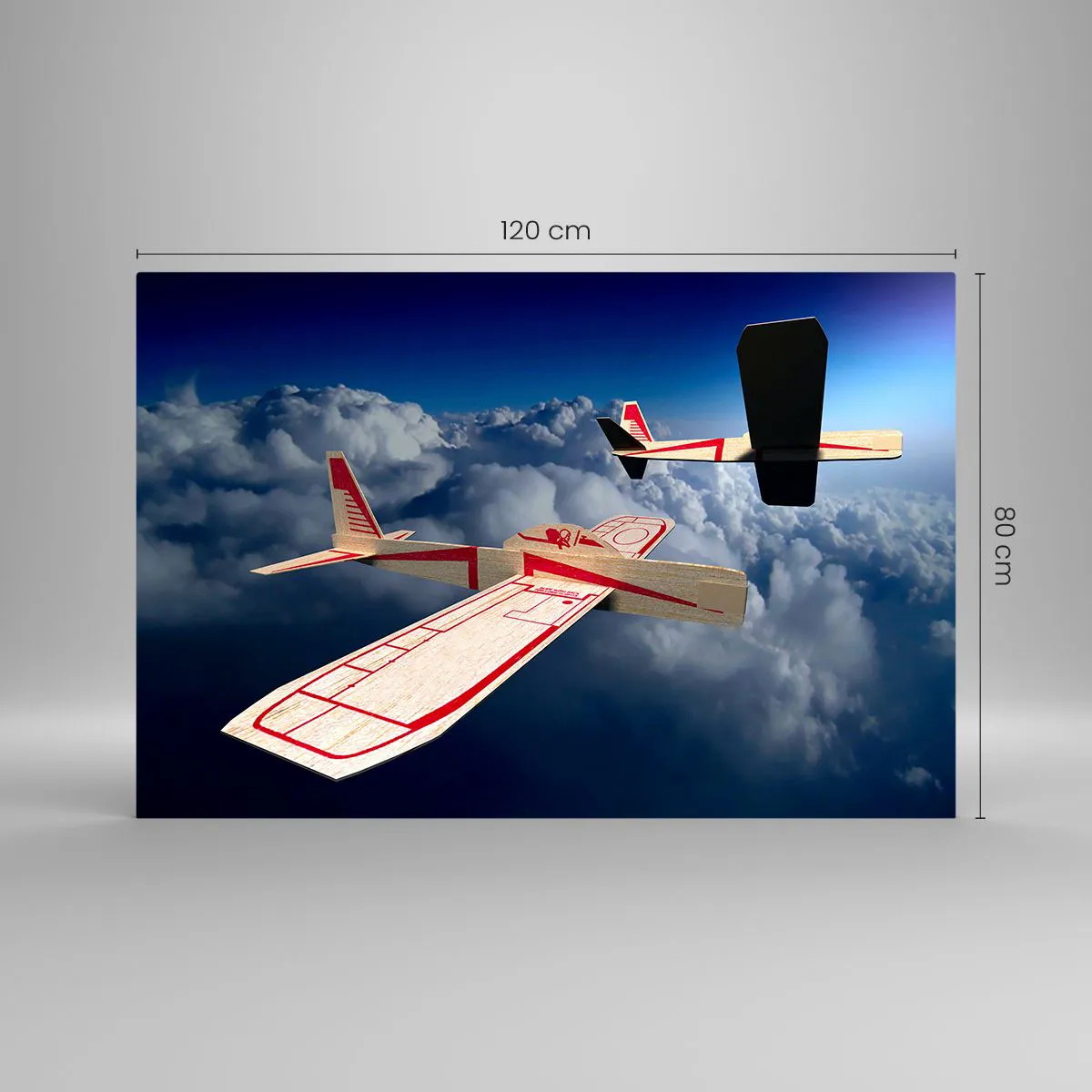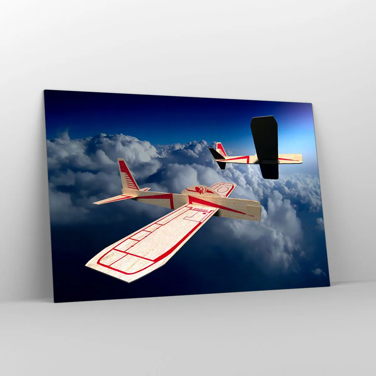 Glasbild - Bild auf glas - Modellflugzeuge gleiten in den Wolken - 120x80cm - Noch höher, noch weiter - Moderne Wanddekoration für Wohnzimmer und Schlafzimmer ARTTOR
