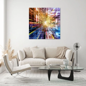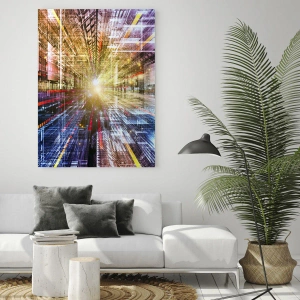 Glasbild - Bild auf glas - Dynamische Lichter in einem futuristischen Korridor - 70x100cm - Leuchtender Korridor - Moderne Wanddekoration für Wohnzimmer und Schlafzimmer ARTTOR