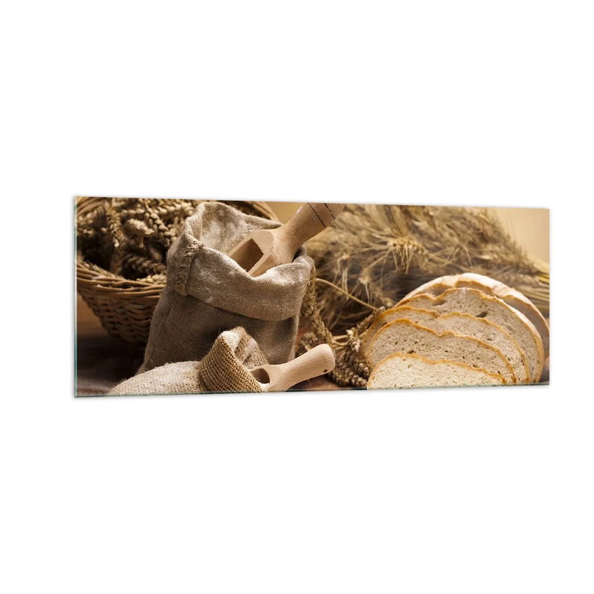 Glasbild - Bild auf glas - Eine Landschaft mit Brot, Mehl und Ähren im rustikalen Stil. - 140x50cm - Wie mit einem Messer geschnitten - Moderne Wanddekoration für Wohnzimmer und Schlafzimmer ARTTOR