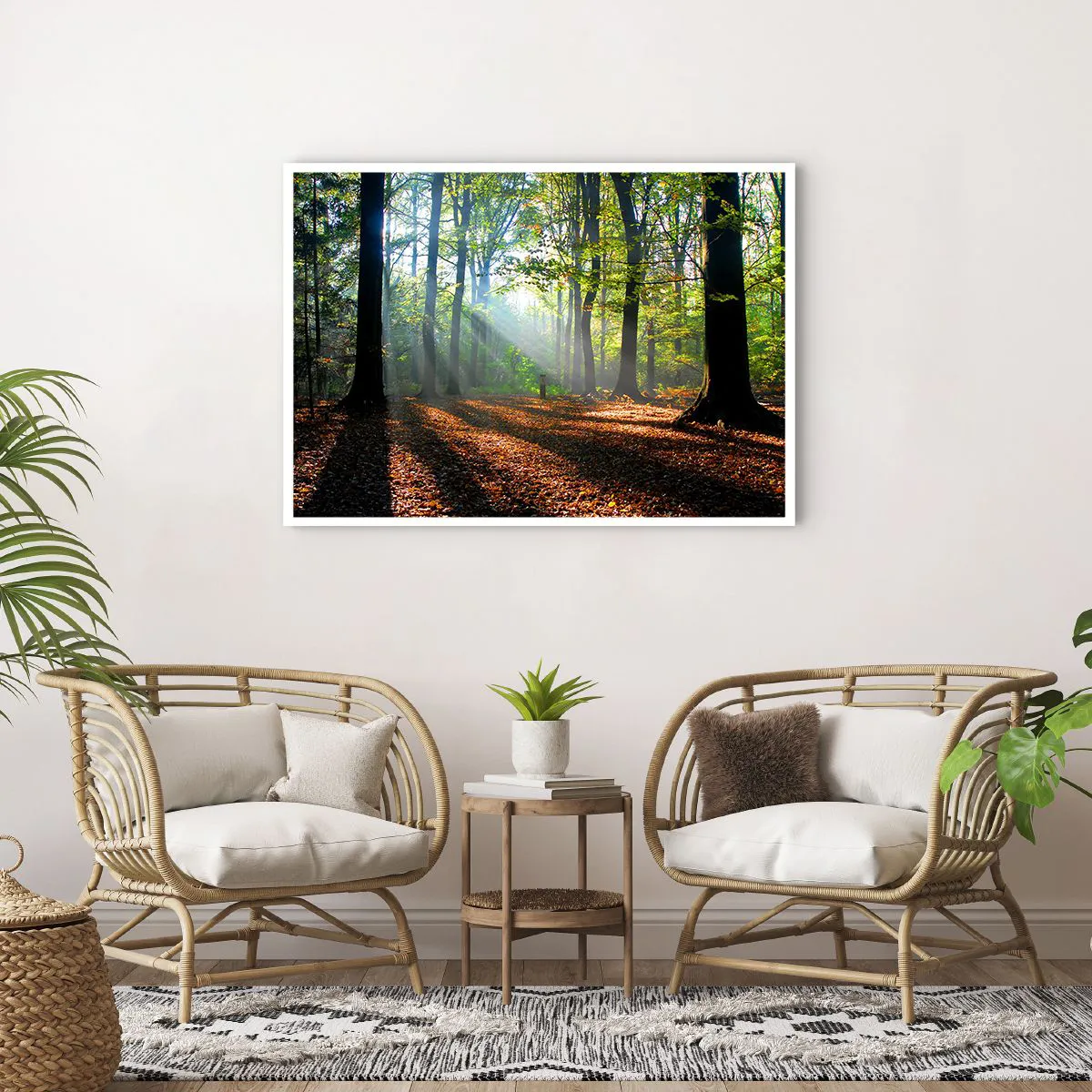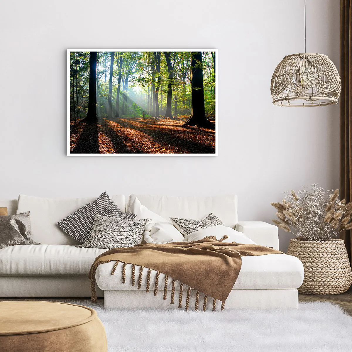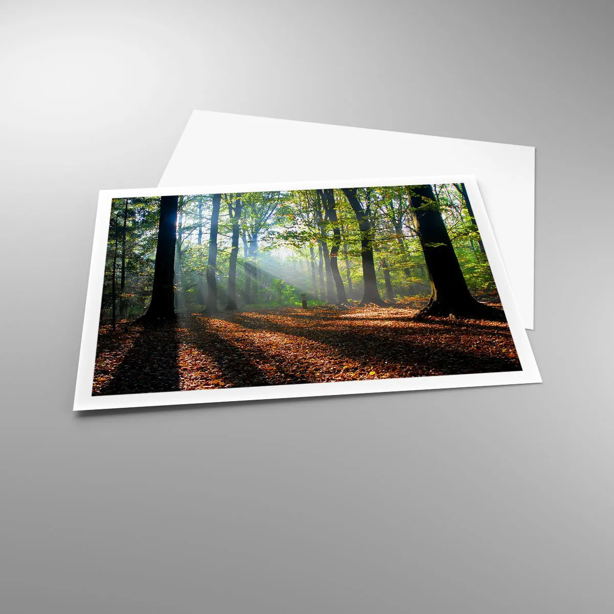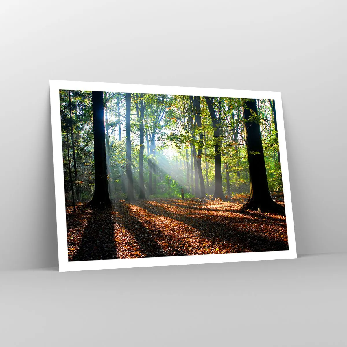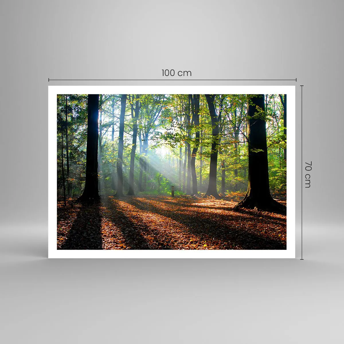 Poster - Eine Waldlichtung, die von den Sonnenstrahlen erleuchtet wird - 100x70cm - Licht und Schatten - Moderne Wanddekoration für Wohnzimmer und Schlafzimmer ARTTOR
