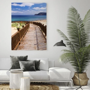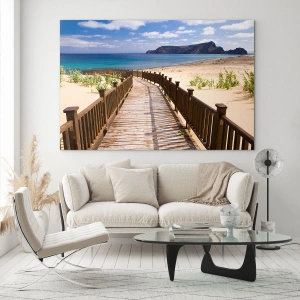 Glasbild - Bild auf glas - Holzweg zum Strand mit Meerblick - 140x50cm - Bring mich zu den glücklichen Inseln - Moderne Wanddekoration für Wohnzimmer und Schlafzimmer ARTTOR