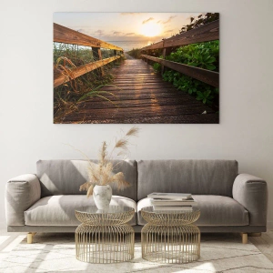 Glasbild - Bild auf glas - Holzsteg zum Strand bei Sonnenuntergang - 160x50cm - Und direkt ans Ufer - Moderne Wanddekoration für Wohnzimmer und Schlafzimmer ARTTOR
