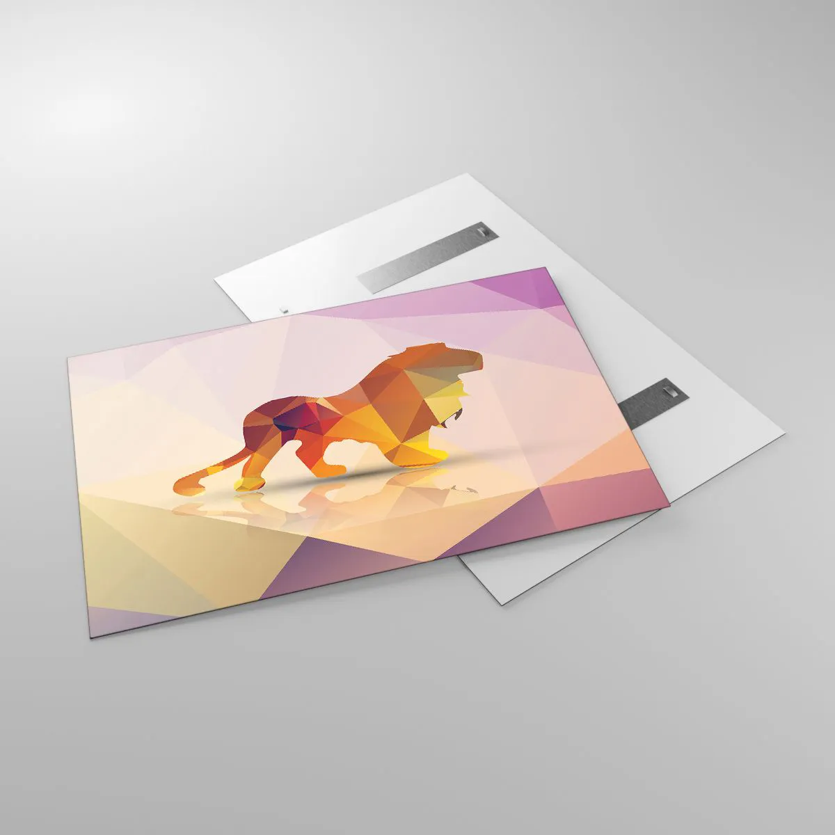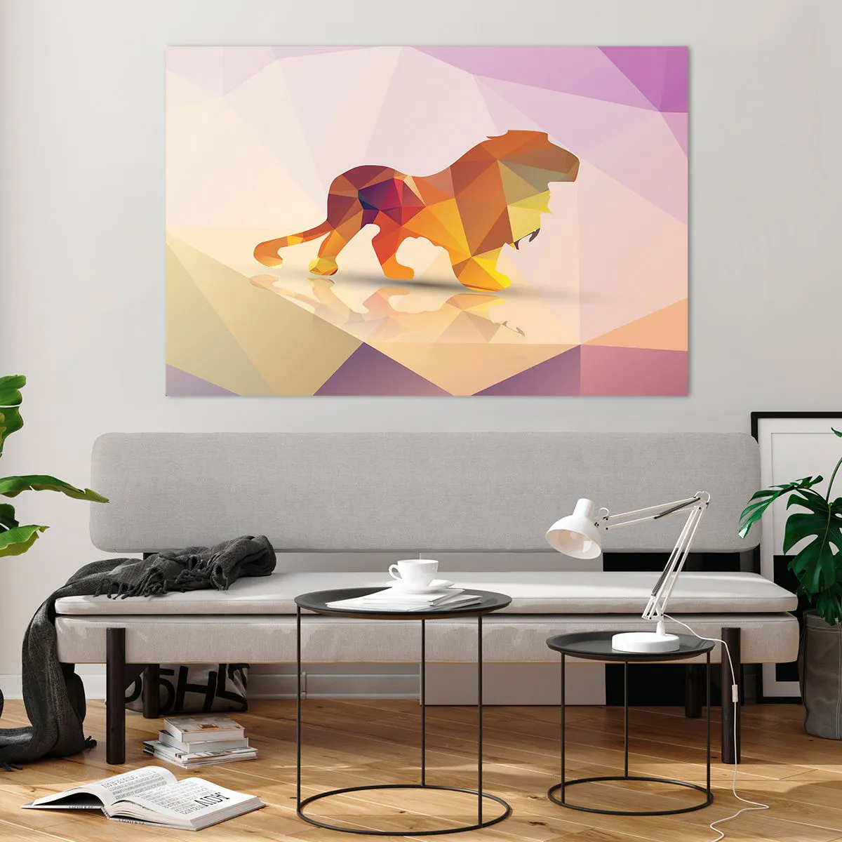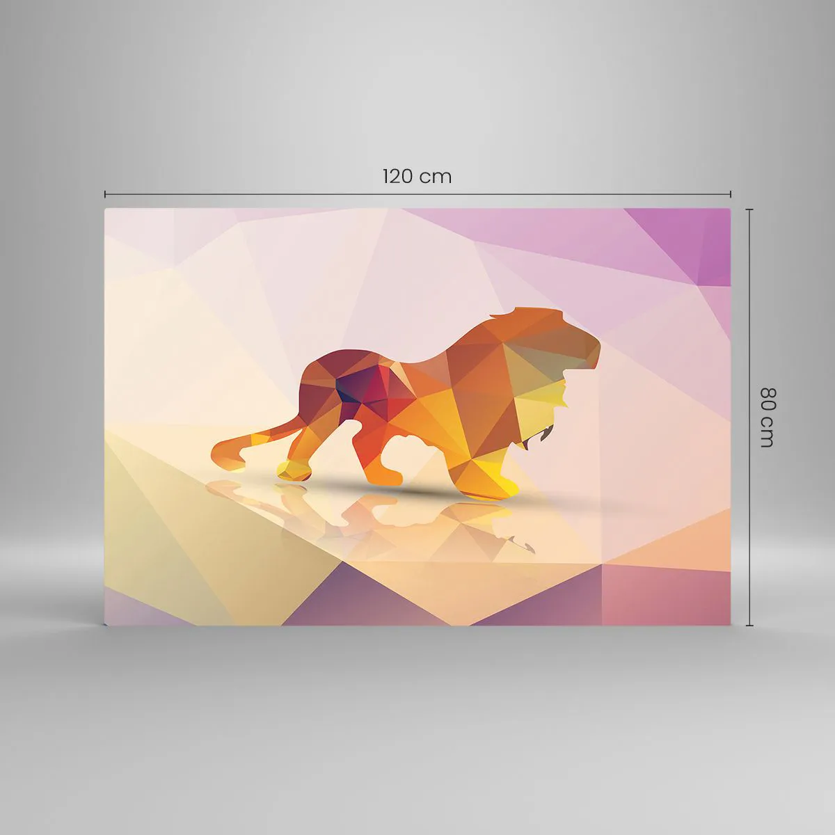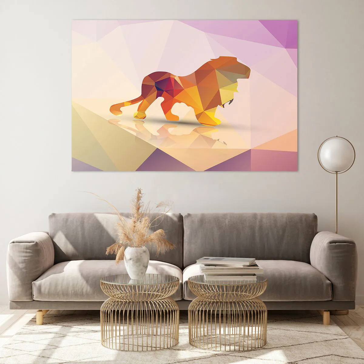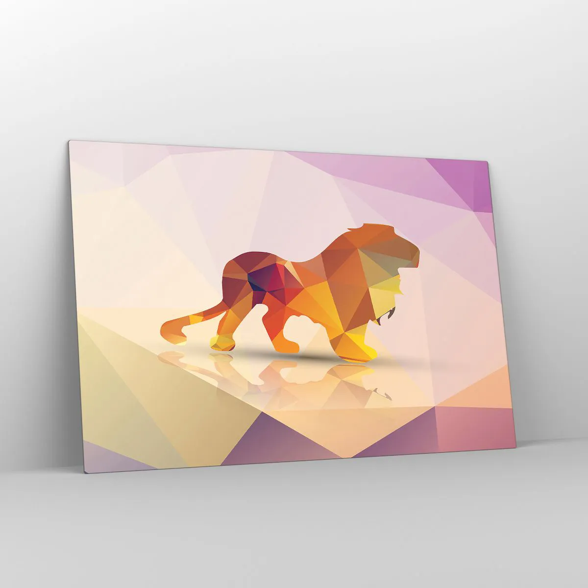 Glasbild - Bild auf glas - Geometrischer Löwe in farbenfroher Abstraktion - 120x80cm - Der Diamantenkönig - Moderne Wanddekoration für Wohnzimmer und Schlafzimmer ARTTOR