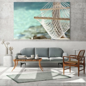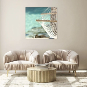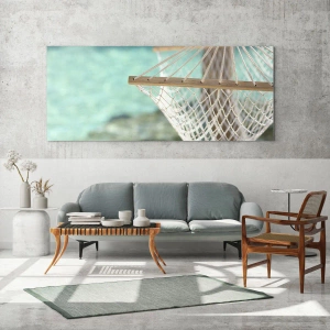 Glasbild - Bild auf glas - Eine Hängematte mit Blick auf das türkisfarbene Wasser - 120x50cm - Zeit zum Entspannen - Moderne Wanddekoration für Wohnzimmer und Schlafzimmer ARTTOR