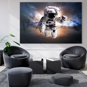 Glasbild - Bild auf glas - Astronaut im Weltraum mit einer Galaxie im Hintergrund - 50x70cm - Grüße aus dem Weltall - Moderne Wanddekoration für Wohnzimmer und Schlafzimmer ARTTOR