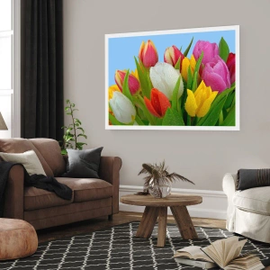 Poster - Ein blumiger Regenbogen in Tautropfen - 91x61 cm