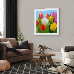 Poster in einem weißen Rahmen - Ein blumiger Regenbogen in Tautropfen - 70x50 cm