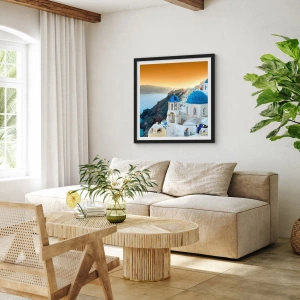 Poster in einem schwarzem Rahmen - Santorini - an die Felsen gekuschelt - 40x50 cm