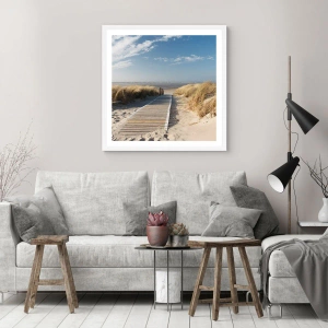 Poster in einem weißen Rahmen - Hinter der Düne, im Rauschen des Grases - 50x50 cm