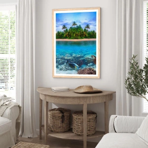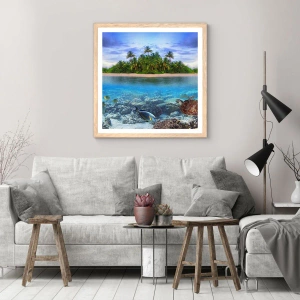 Poster in einem Rahmen aus heller Eiche - Heavenly Island lädt dich ein - 100x70 cm