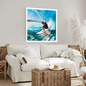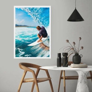 Poster - Ein Surfer in dynamischer Pose auf einer Welle im türkisfarbenen Wasser. - 100x70cm - Tanzen mit den Wellen - Moderne Wanddekoration für Wohnzimmer und Schlafzimmer ARTTOR