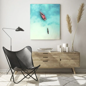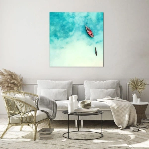 Glasbild - Bild auf glas - Boote auf türkisfarbenem Wasser aus der Vogelperspektive - 80x120cm - Denn an den Stränden von Sansibar, wenn der Wasserüberschuss ... - Moderne Wanddekoration für Wohnzimmer und Schlafzimmer ARTTOR