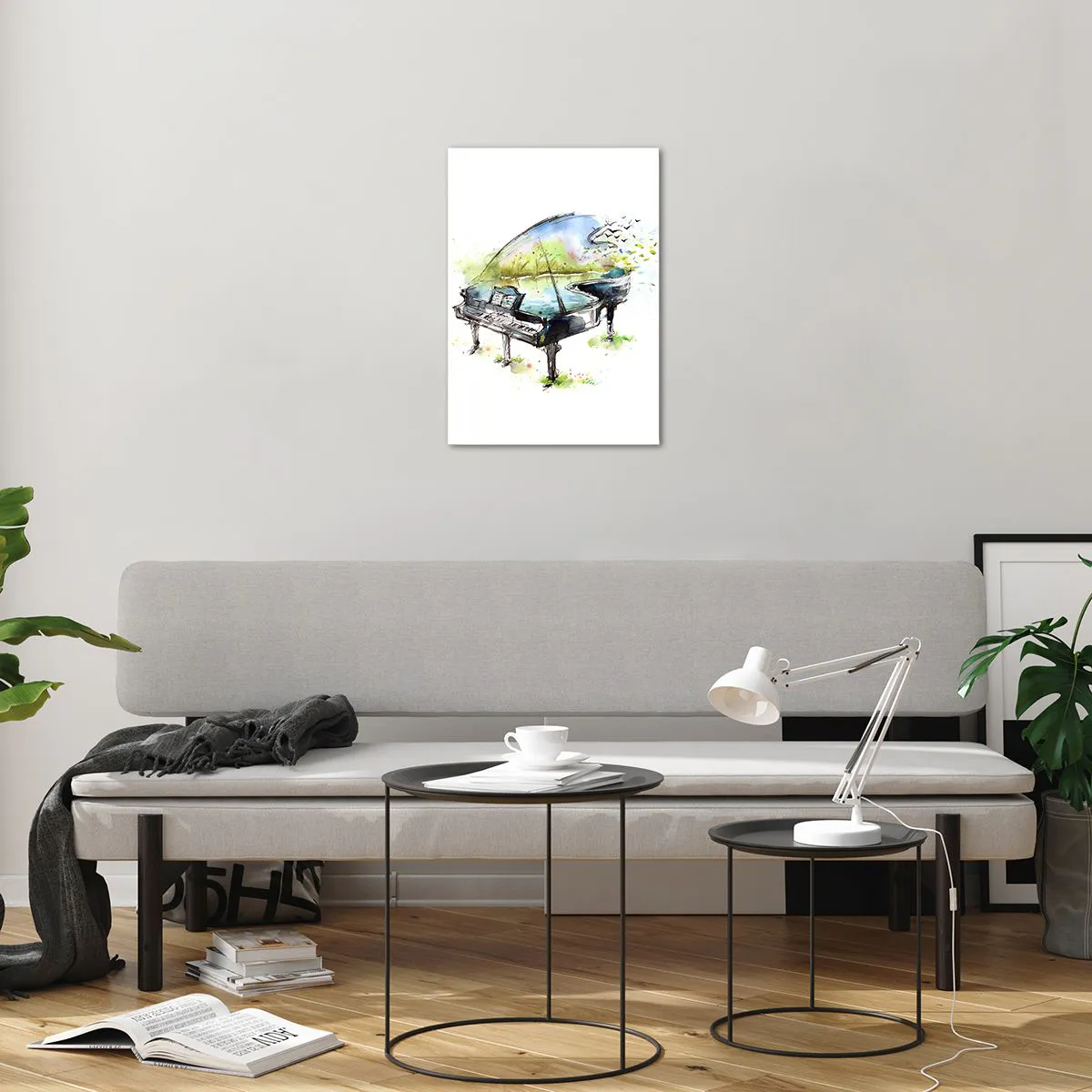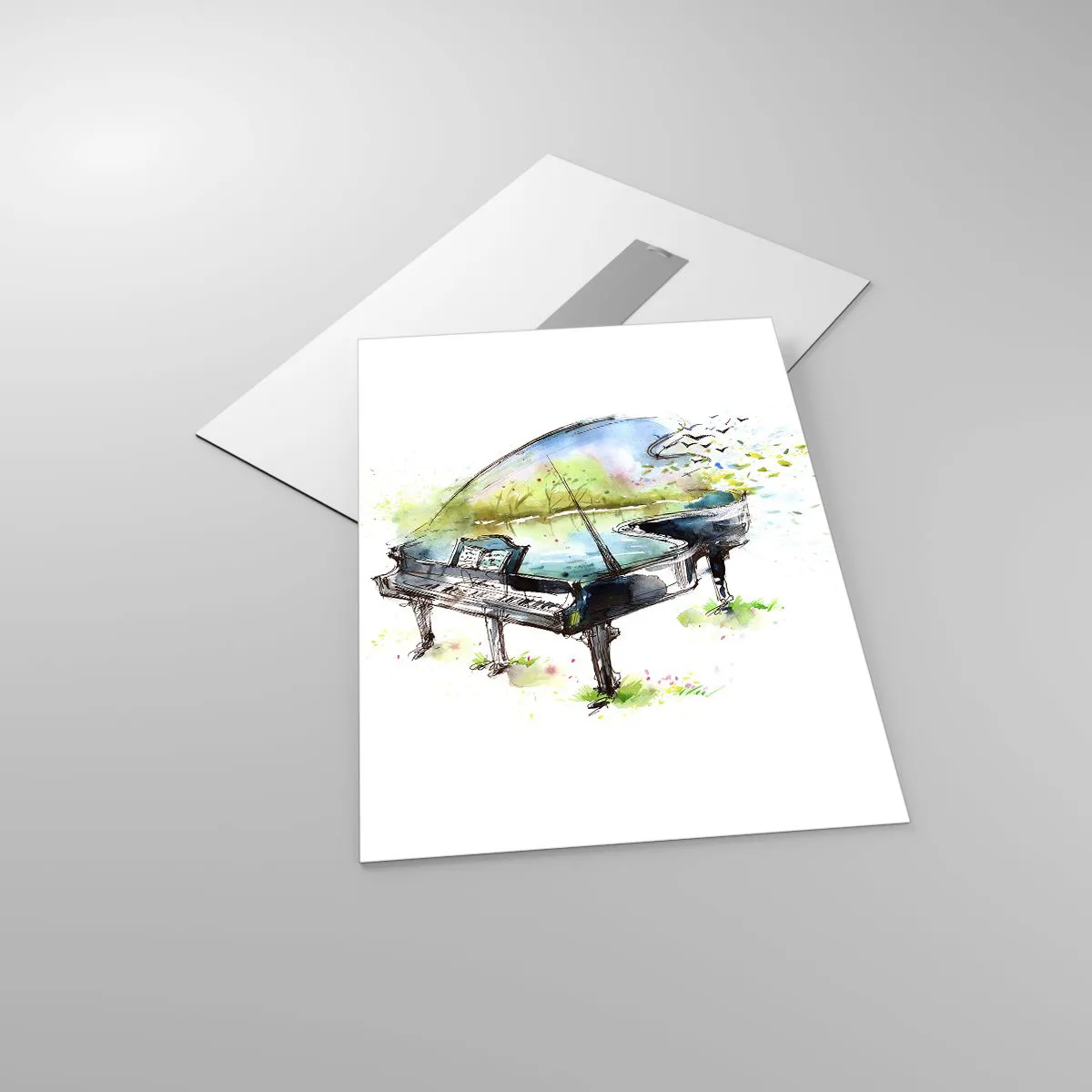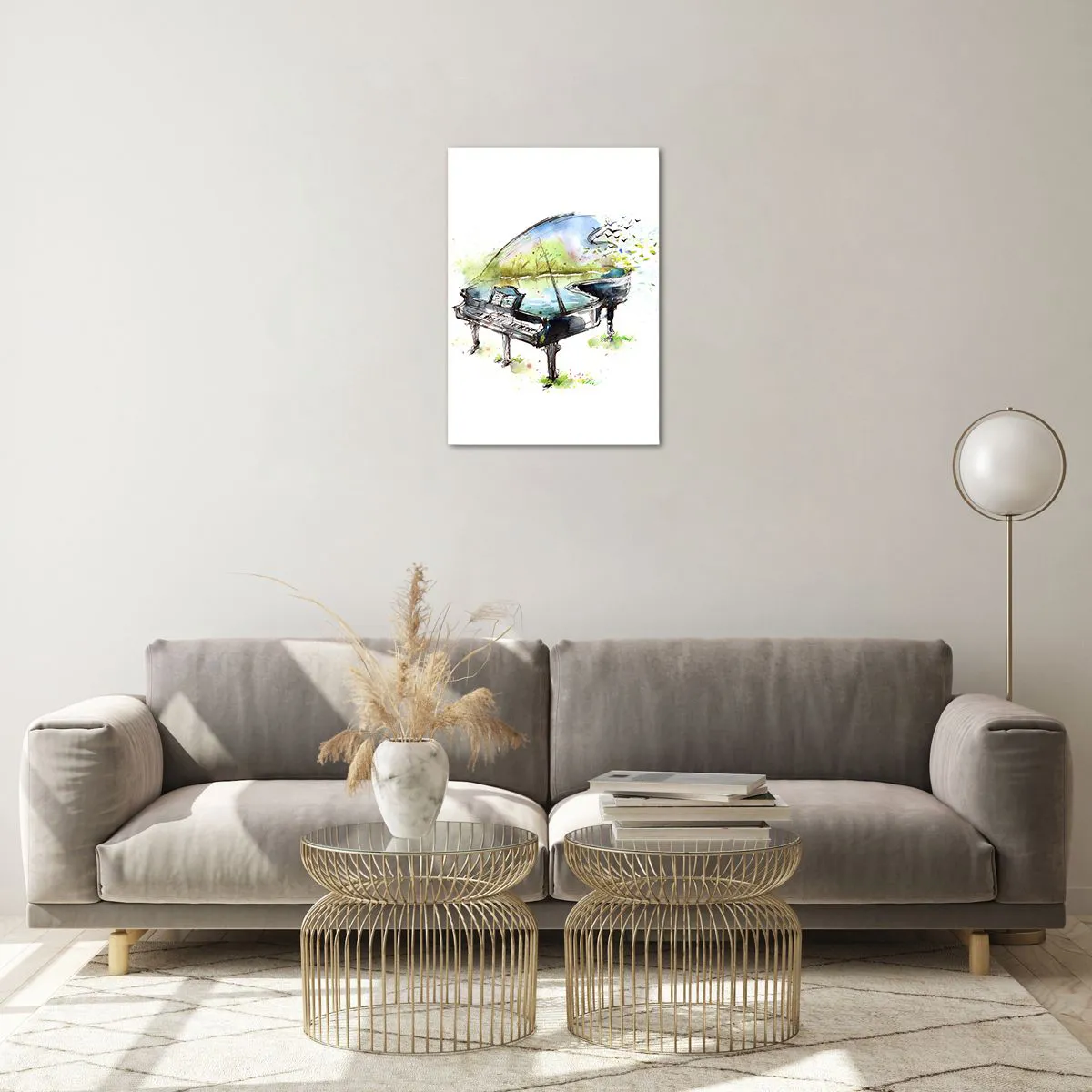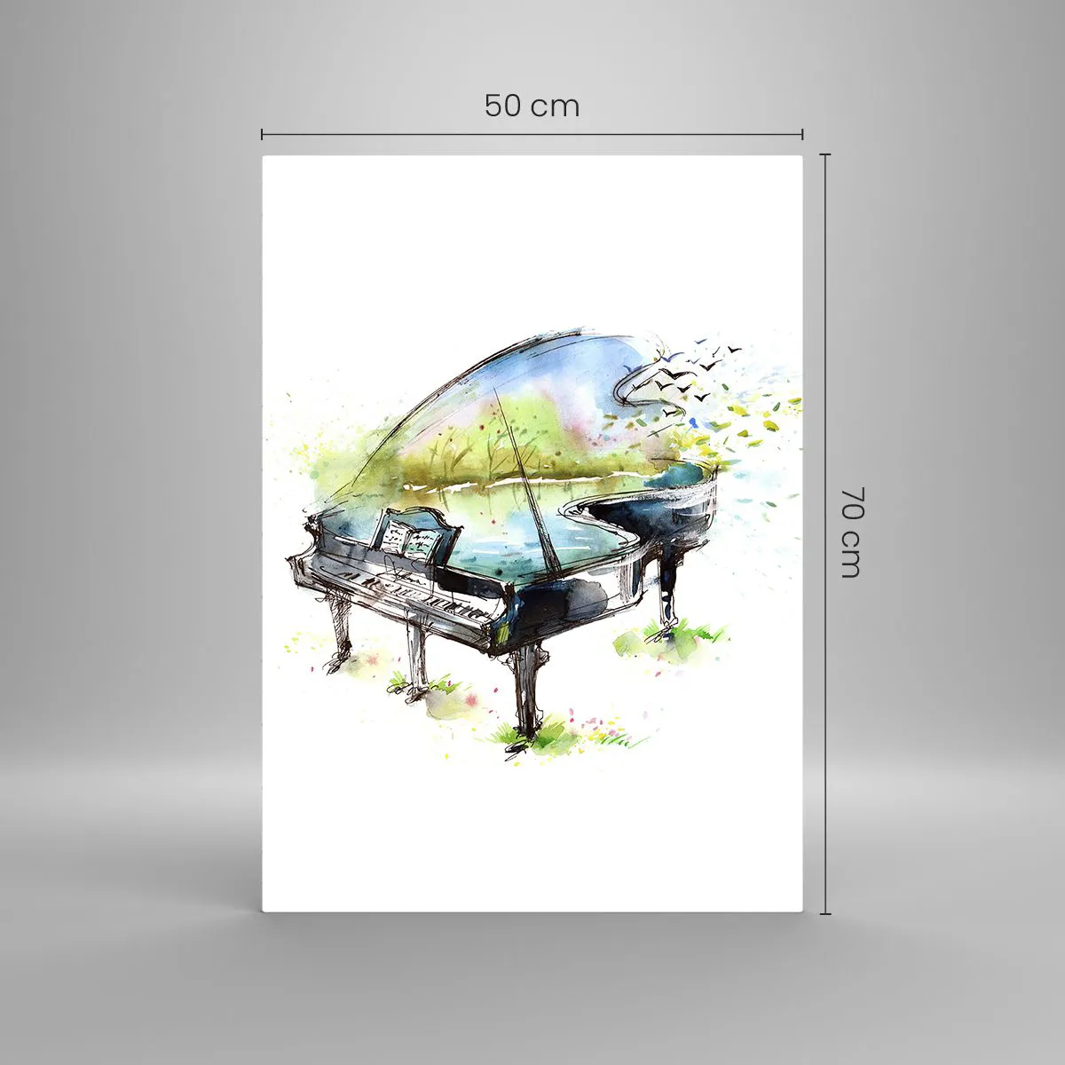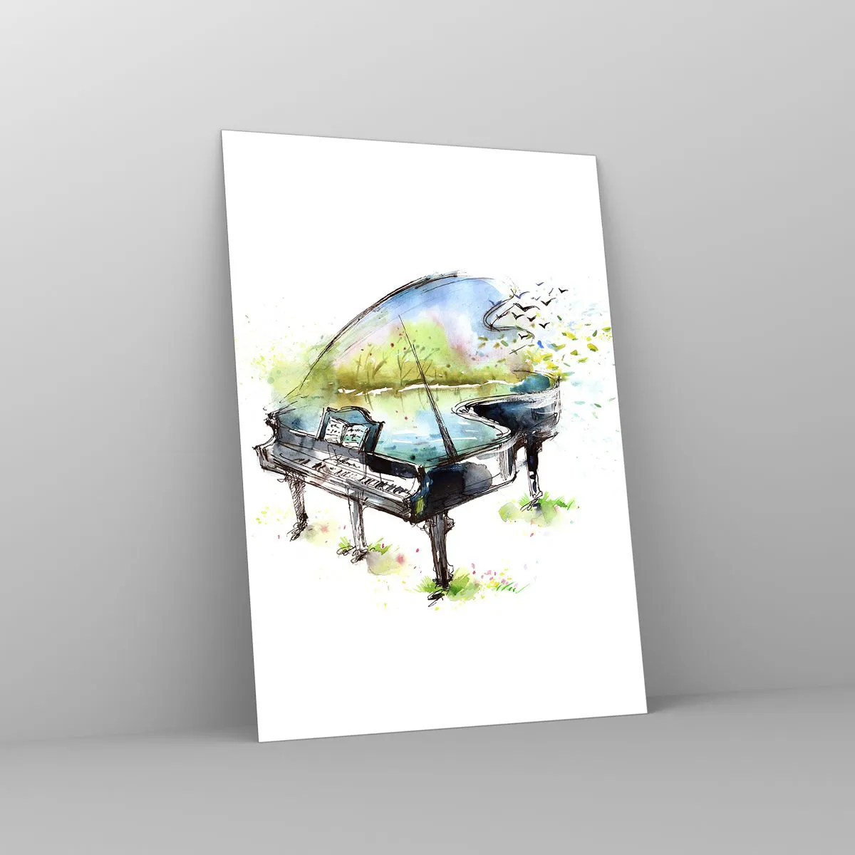 Glasbild - Bild auf glas - Aquarell eines Klaviers inmitten der Natur - 50x70cm - Von Musik verzaubert - Moderne Wanddekoration für Wohnzimmer und Schlafzimmer ARTTOR
