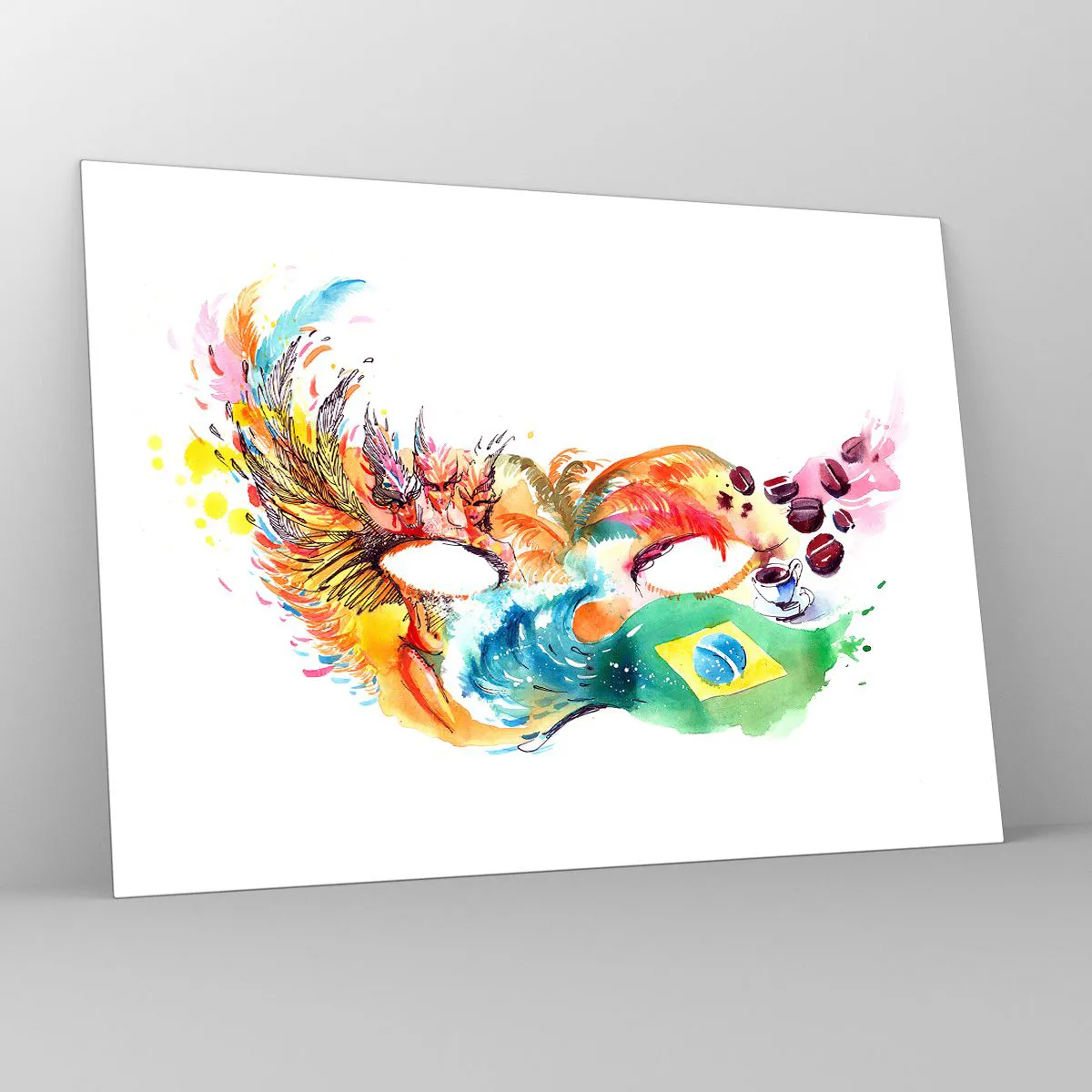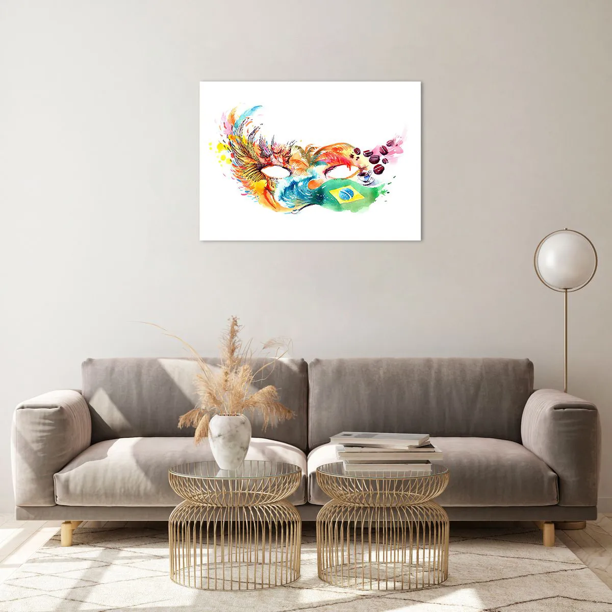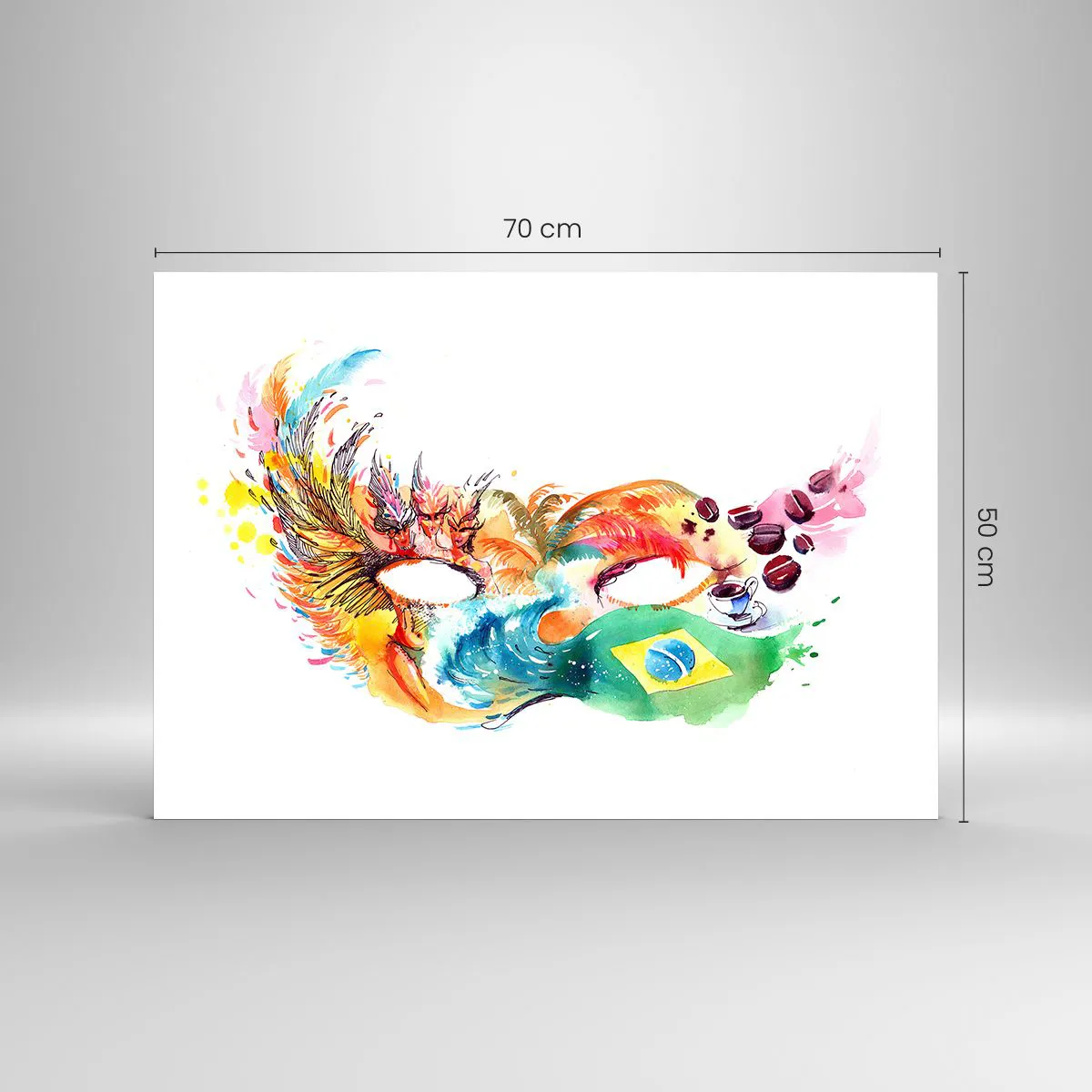 Glasbild - Bild auf glas - Eine farbenfrohe Maske, inspiriert vom brasilianischen Karneval - 70x50cm - Brasilien begrüßt Samba - Moderne Wanddekoration für Wohnzimmer und Schlafzimmer ARTTOR